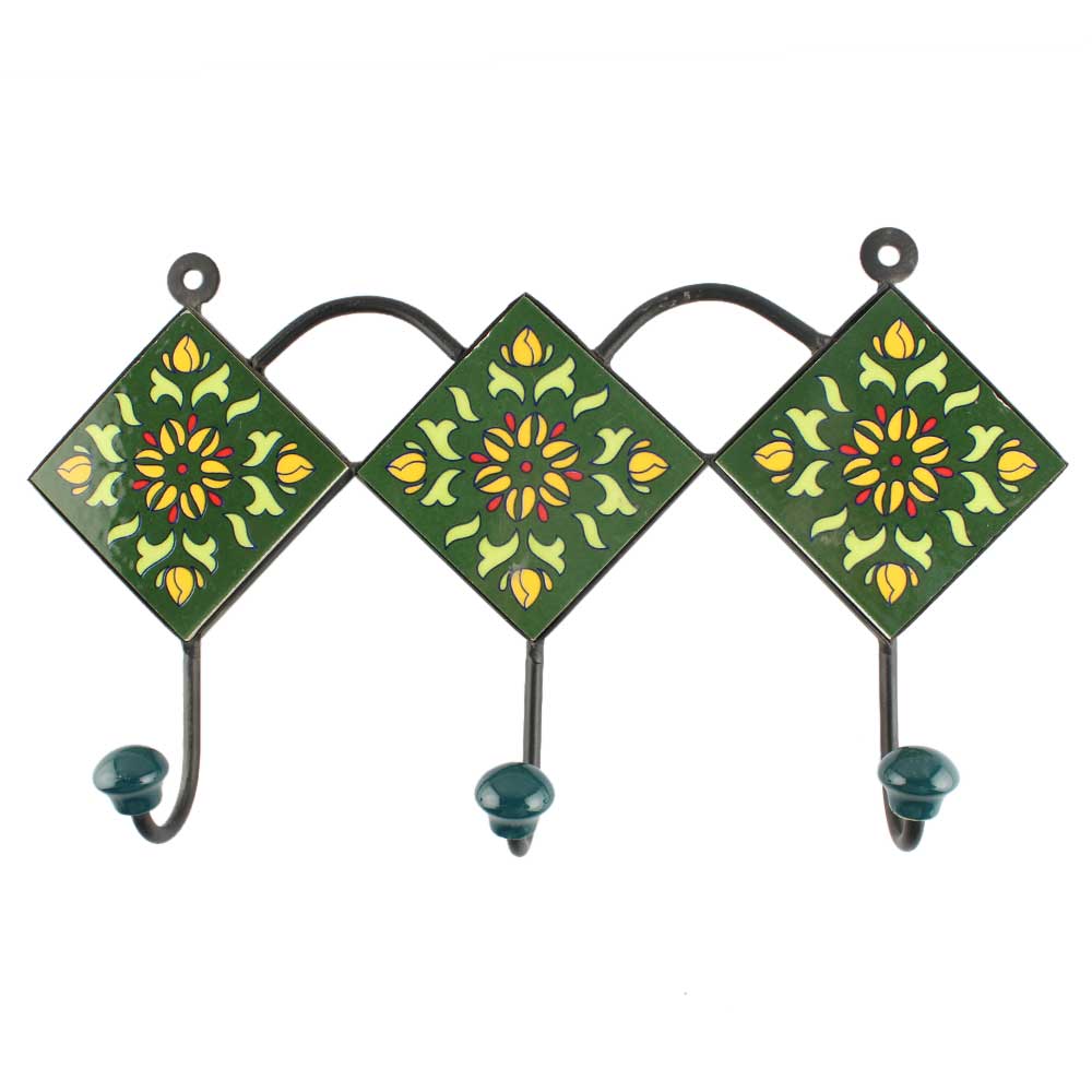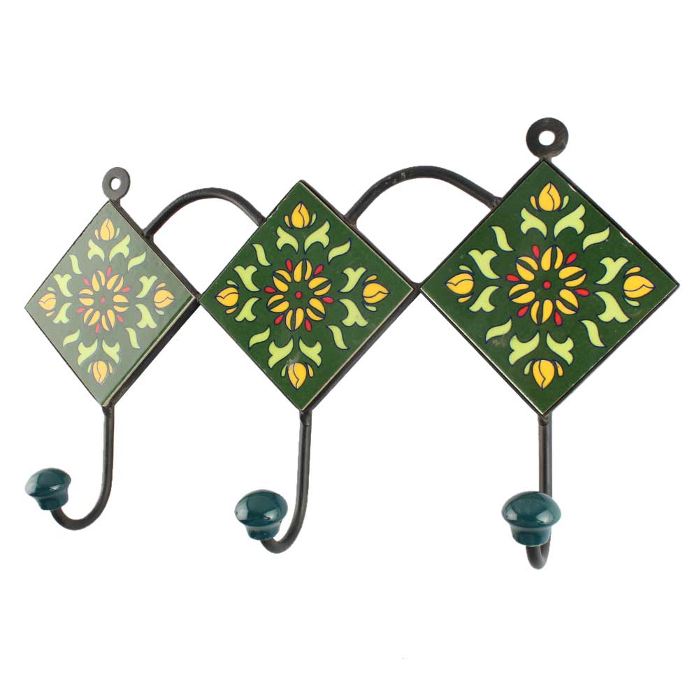 Forest Green Wheel Flower Ceramic Tile Wall Hook