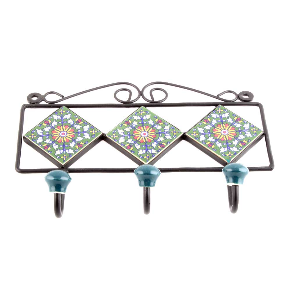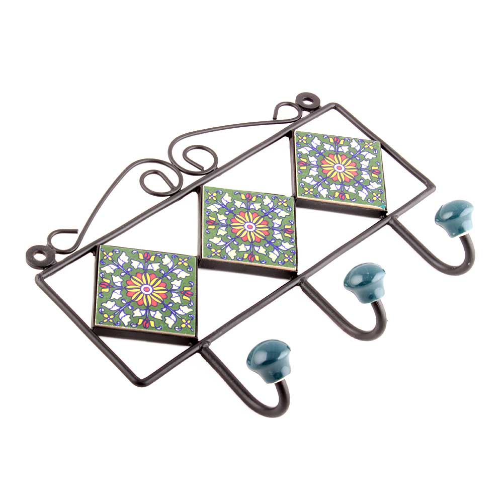 Forest Green Yellow Sunflower Tiles Hook.When Put on Wall or Cabinet it is an Art in itself. The Metal Part of this Hook is Black Powder Coated.