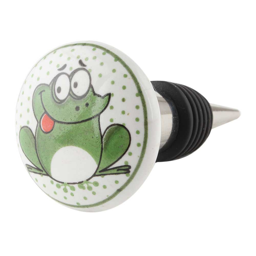 Frog Ceramic Wine Bottle Stopper. Zinc Alloy Wine Bottle Stopper with Attractive Jute Bag Packaging.