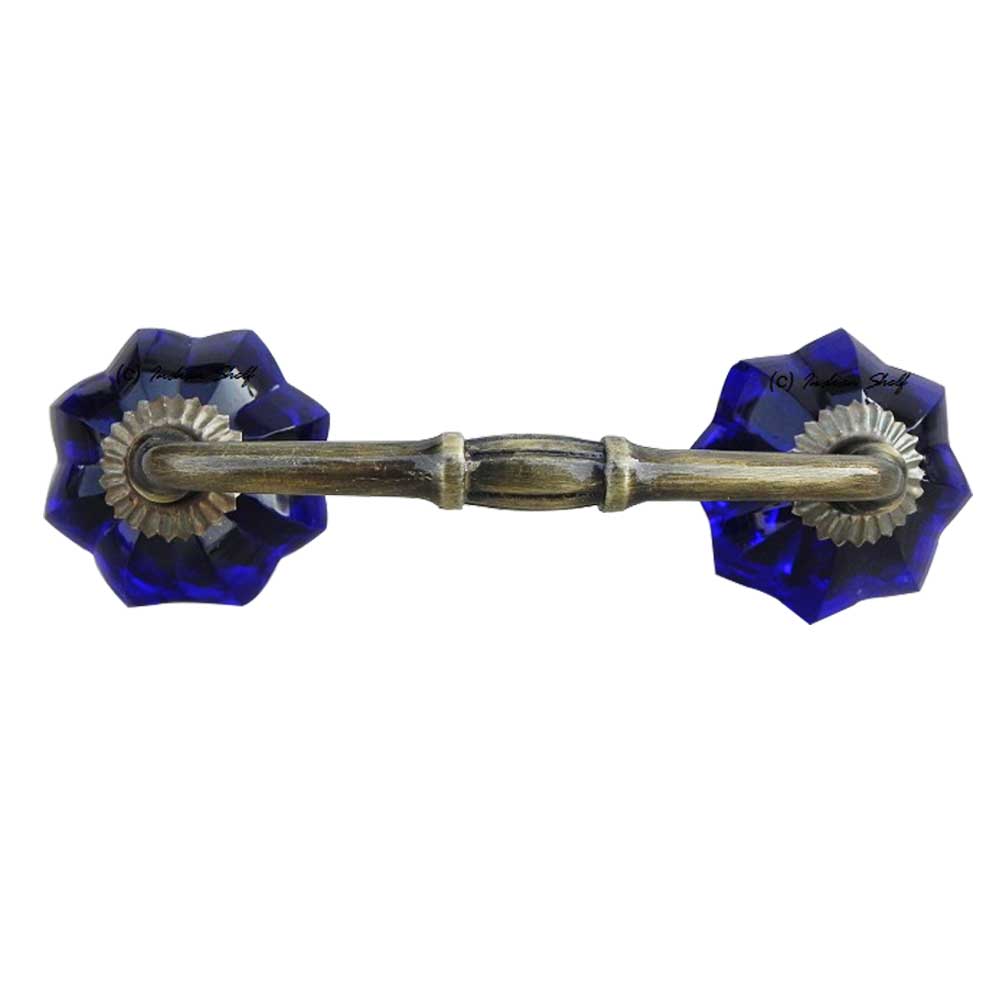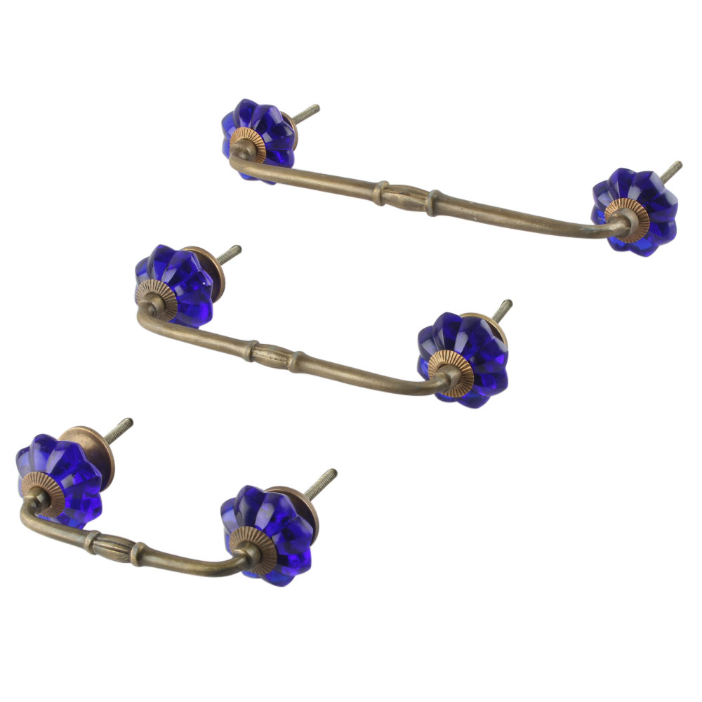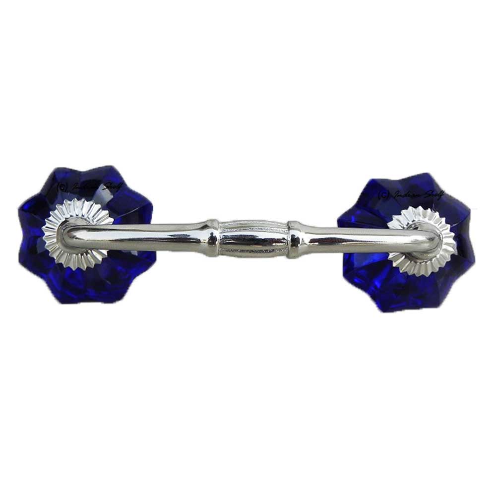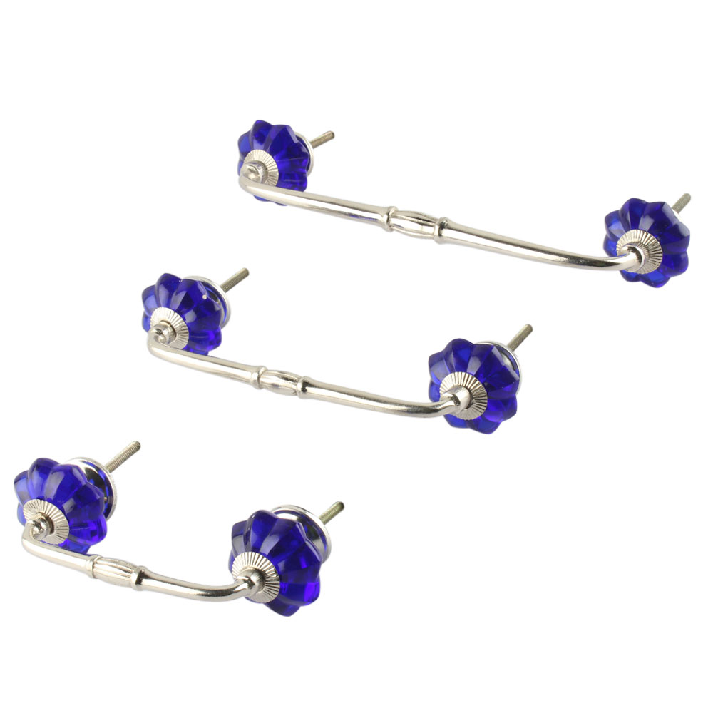 Navy Blue Glass Bridge Handle. Ideal for Drawer, Dresser, Cabinet, Wardrobe, Cupboard and Almirah.