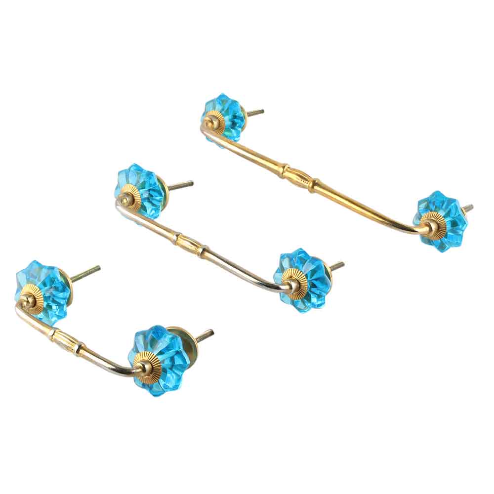 Blue Glass Bridge Handle. Ideal for Drawer, Dresser, Cabinet, Wardrobe, Cupboard and Almirah.