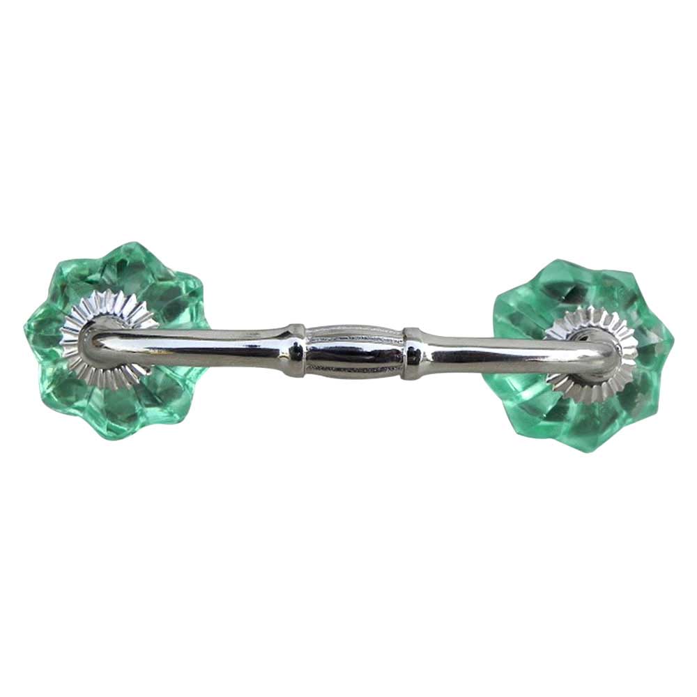 Mint Green Glass Bridge Handle. Ideal for Drawer, Dresser, Cabinet, Wardrobe, Cupboard and Almirah.