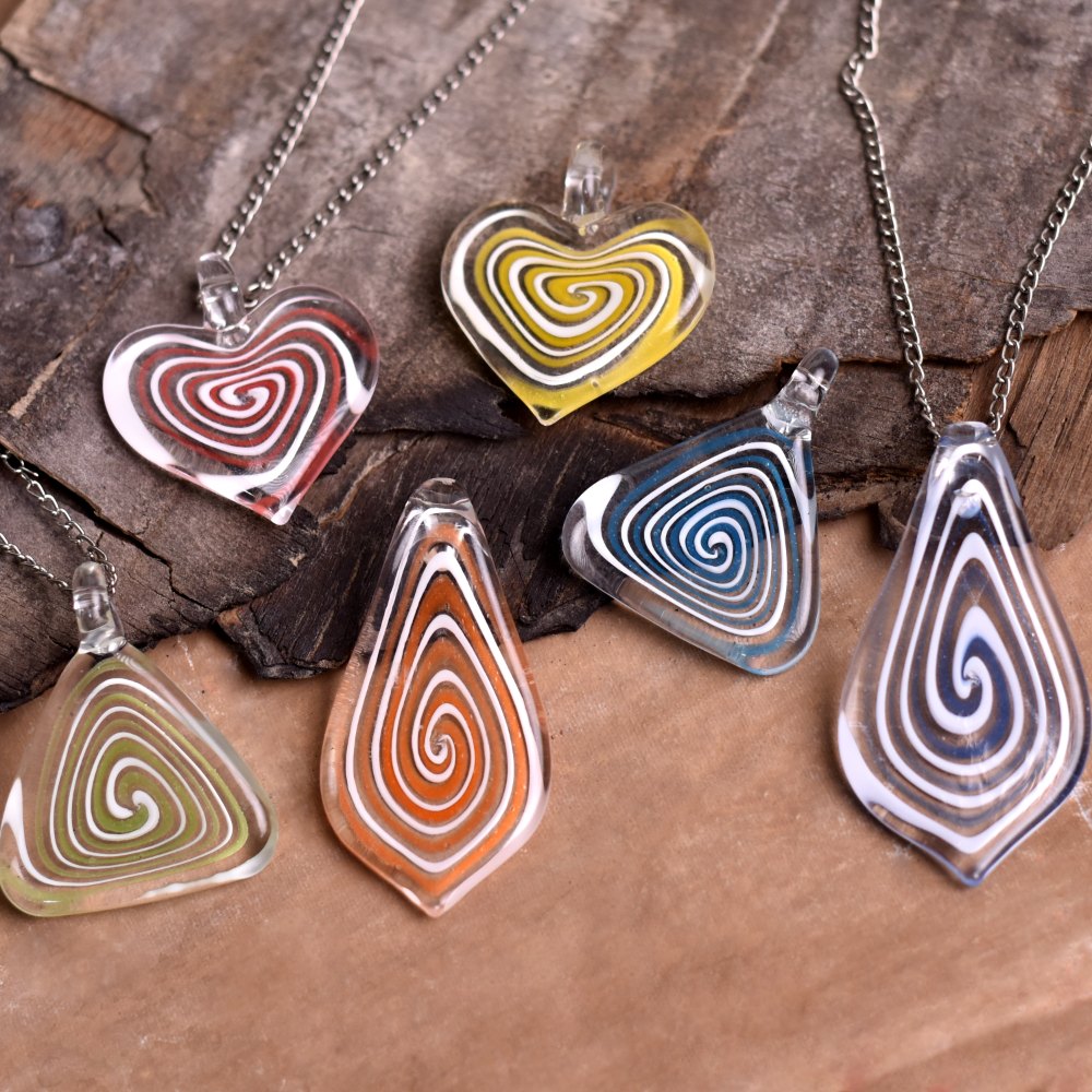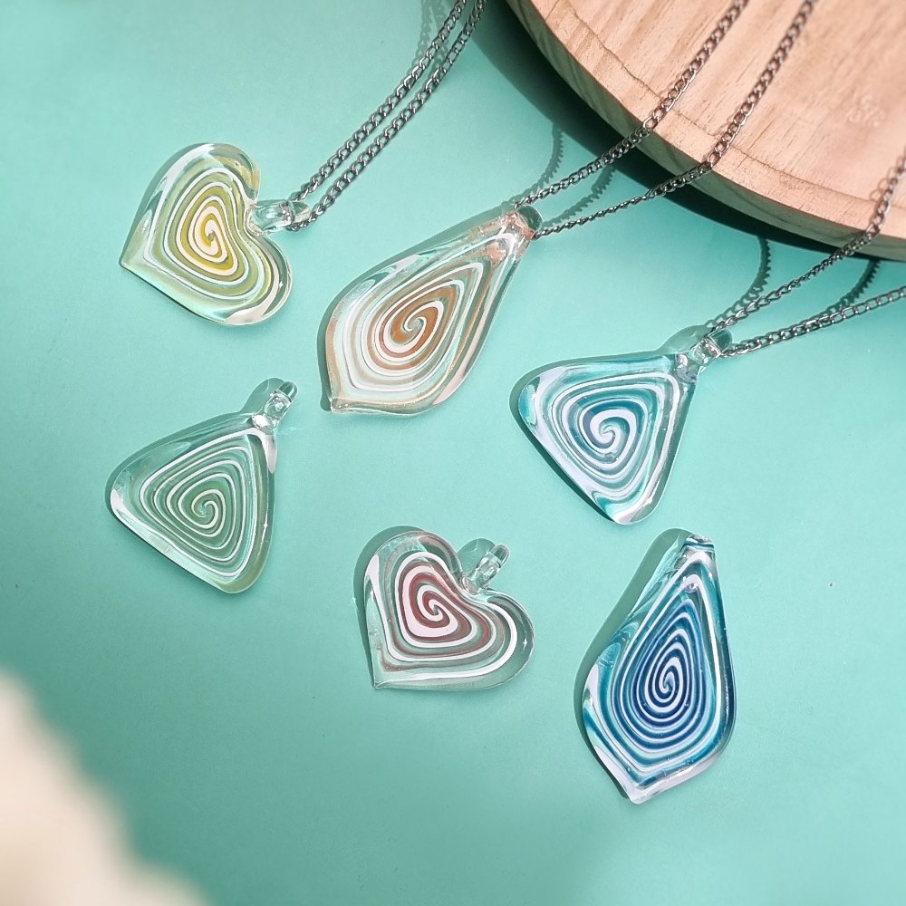 Bring your jewelry creations to life with this Set of 6 Multicolor Glass Lampwork Spiral Pendants, each handcrafted with precision and passion. Made using the traditional lampwork technique, these pendants feature mesmerizing spiral patterns embedded within transparent glass, creating a dance of color and light. Their artistic craftsmanship and multicolor finish make them perfect for statement necklaces, elegant bracelets, or meaningful handmade gifts.