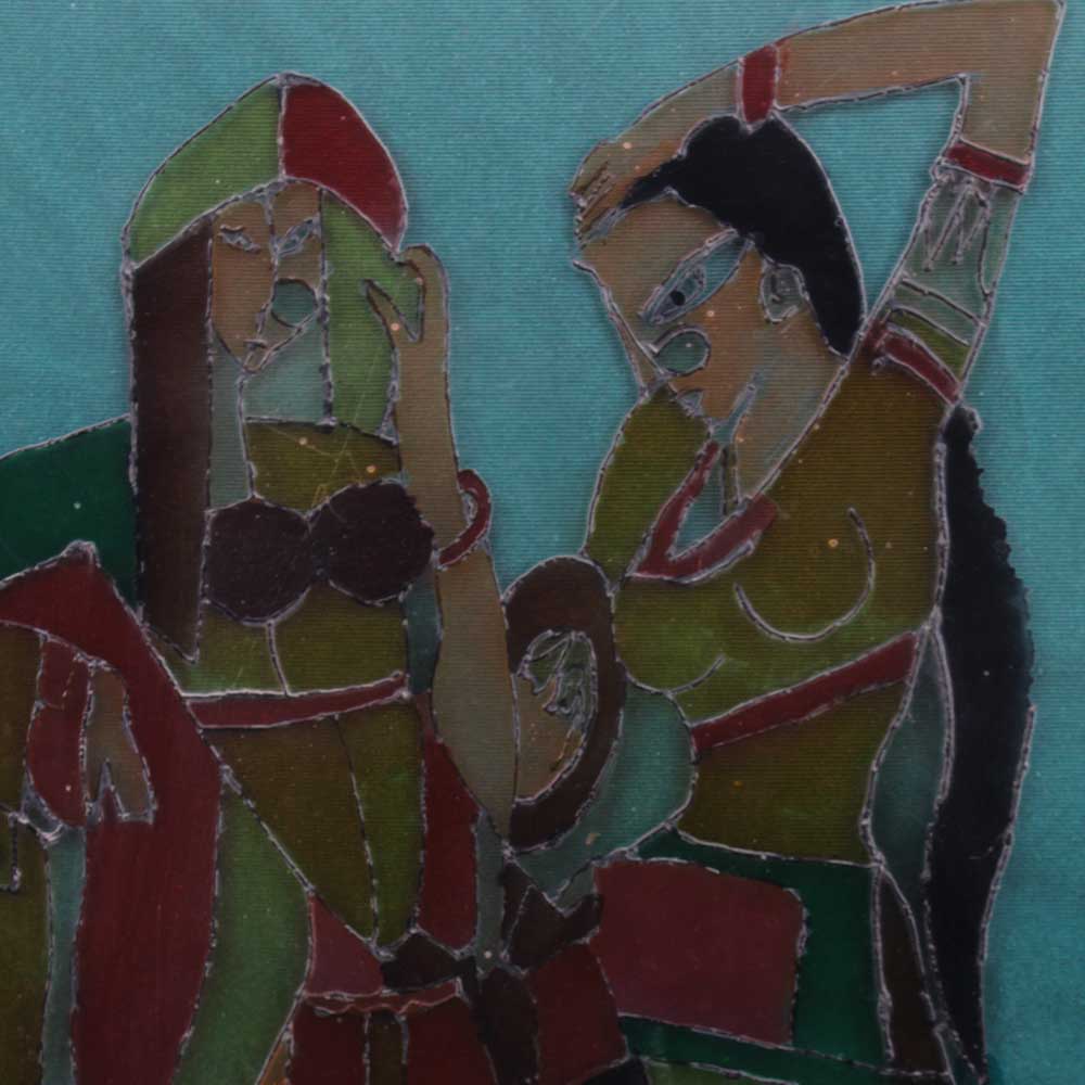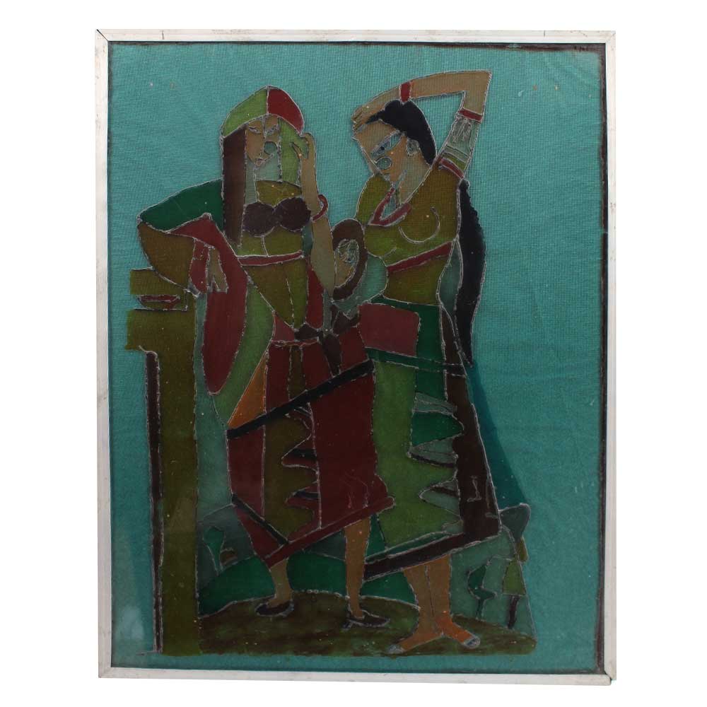 Bring elegance to your living room, dining room, hotel, and office leaves a strong and lasting Impression, Perfect for gifting and home décor glass with this handmade oil painting of village women made by the expert artist using bright colors.