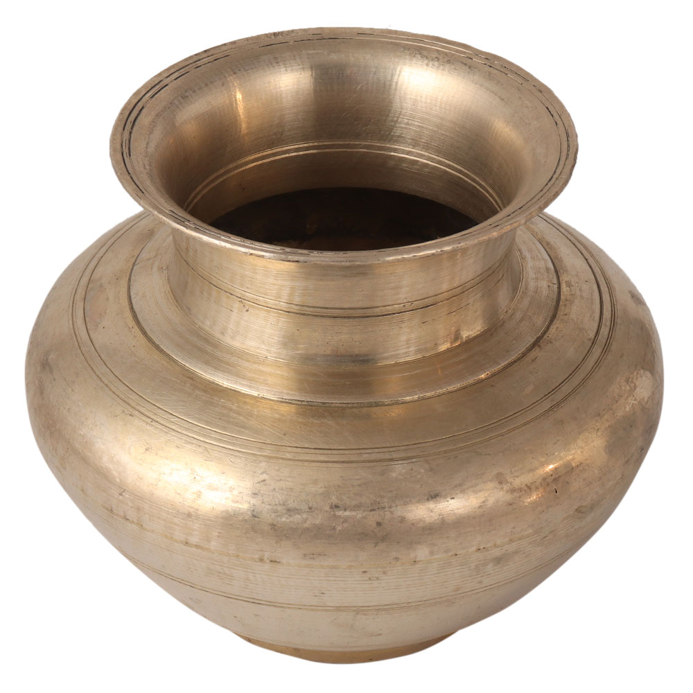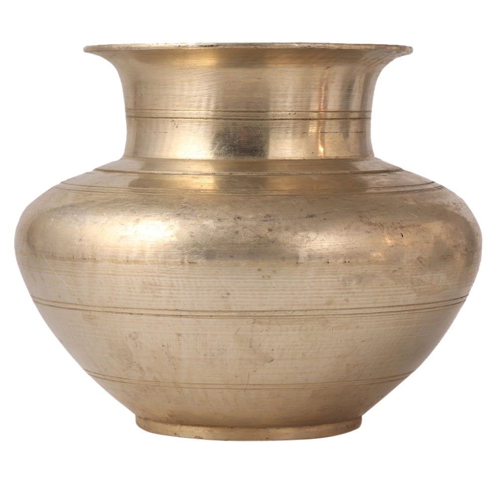 A Gangajal water pot with a shiny appearance. It was carved with circular rings on the sides. It has an attractive appearance as it is made of white metal alloy. It can be used for corporate ceremonies, Diwali decoration, etc. An essential piece in the collection of vintage collectors.