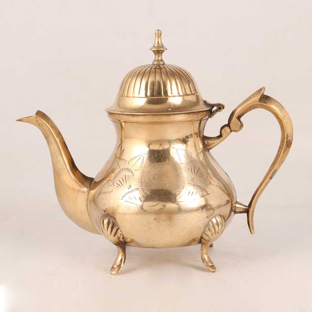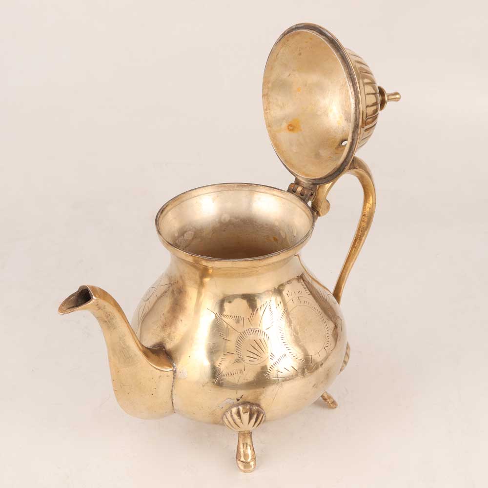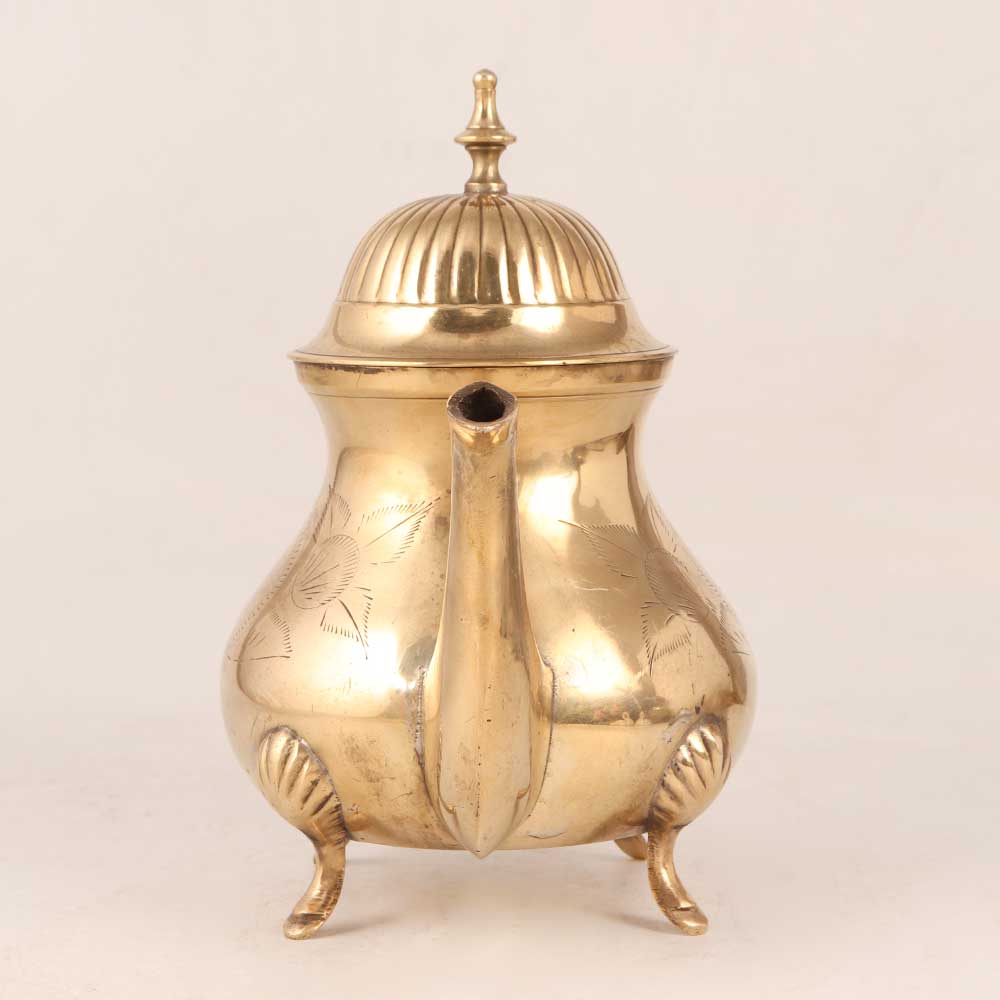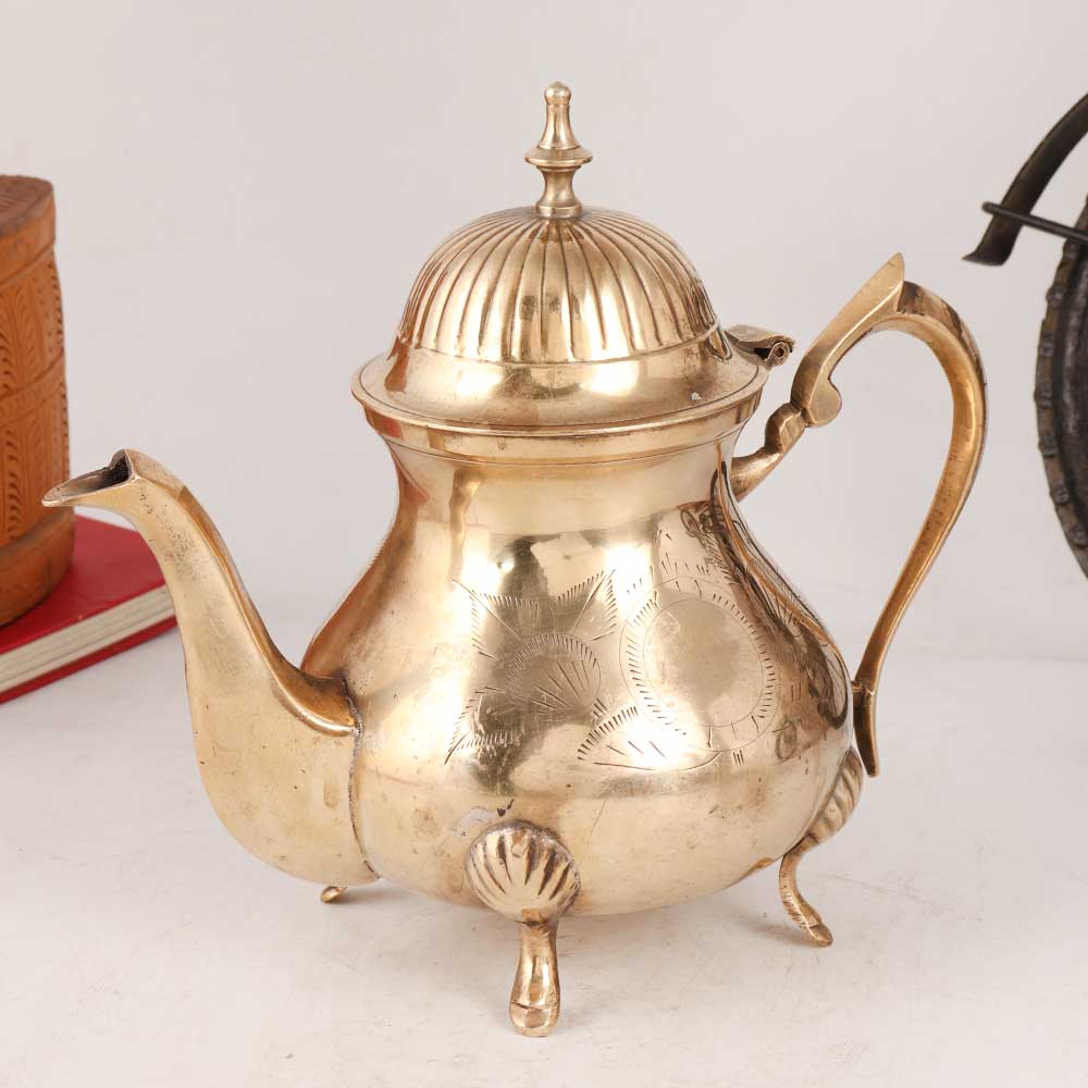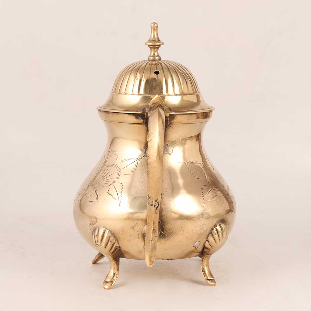 Transport yourself back to an era of elegance with this vintage brass kettle, a true testament to timeless craftsmanship and aesthetic allure. This ornate piece is adorned with intricate engravings that showcase the mastery of talented artisans from the renowned English Art tradition. Crafted from high-quality brass with a lustrous golden finish, this kettle exudes opulence and sophistication, instantly capturing the eye and adding an air of refinement to any space. Its striking lid and elegantly shaped spout reflect the meticulous attention to detail, while four sturdy legs provide a stable base when placed on any surface. While originally used for keeping tea, its vintage charm is now better suited for decorative purposes rather than cooking. Ideal for home, office, restaurant, hotel, or café settings, it infuses spaces with a sense of old-world charm and nostalgia. Whether displayed at exhibitions or added to a vintage collection, this brass kettle is a collector's dream. More than just a decorative piece, it also makes for a thoughtful gift to cherish special moments. Present it to your loved ones on auspicious occasions, festive celebrations, or milestone events, symbolizing the beauty of enduring craftsmanship and the warmth of timeless memories. Embrace the allure of the past with this vintage brass kettle and indulge in a captivating journey through history and art.