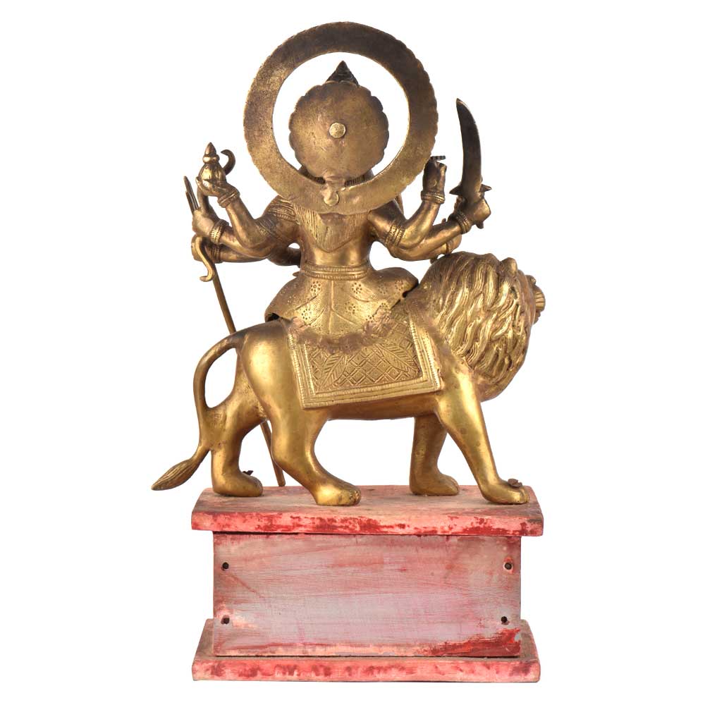 Durga Is a Popular Fierce Form of The Hindu Goddess Or Devi. She is Depicted with Multiple (Variously, From Ten Up to Thousand) Arms, Carrying Various Weapons and Riding a Ferocious Lion. She is Often Pictured as Battling or Slaying Demons, Particularly Mahishasura, the Buffalo Demon. Install this statue at home or office to draw inner strength and also to enhance your home decor .This statue comes with a silver finish.