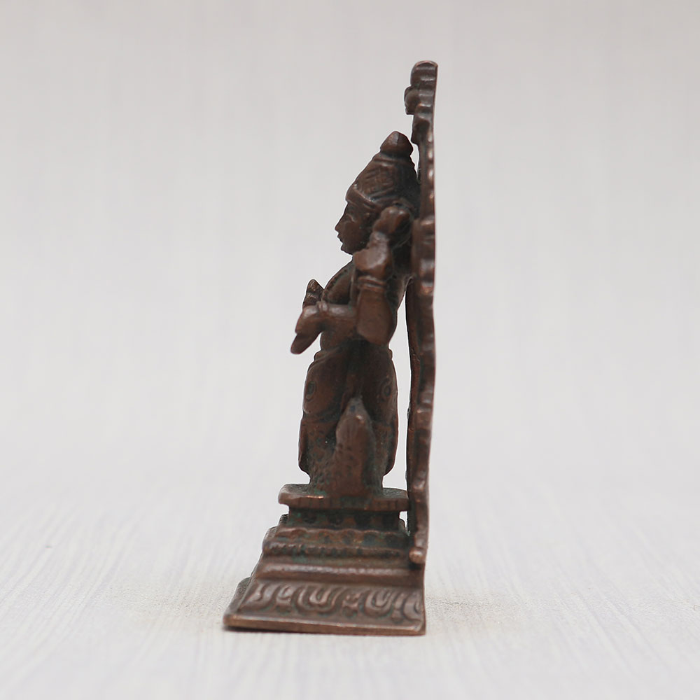 Buy Hindu Goddess Lakshmi Copper Statue online that is a mesmerizing work of art meticulously crafted by highly talented Indian artisans from high-quality copper. This awe-inspiring masterpiece showcases the graceful Goddess Lakshmi standing on an elegant platform, adorned with a magnificent prabhavali frame. Its vintage-style finish adds a touch of timeless charm, making it an ideal addition to your prayer room at home, office, restaurant, cafe, or shop. The statue's eye-catching detailing captures the essence of Goddess Lakshmi, making it a perfect item for exhibitions, decorations, and collections. Whether placed in a temple for worship or gifted to your loved ones on special, festive, or auspicious occasions, this statue exudes divinity and blessings. Invite prosperity and abundance into your life with the enchanting presence of Goddess Lakshmi statue, a true gem among idols and statues of gods.