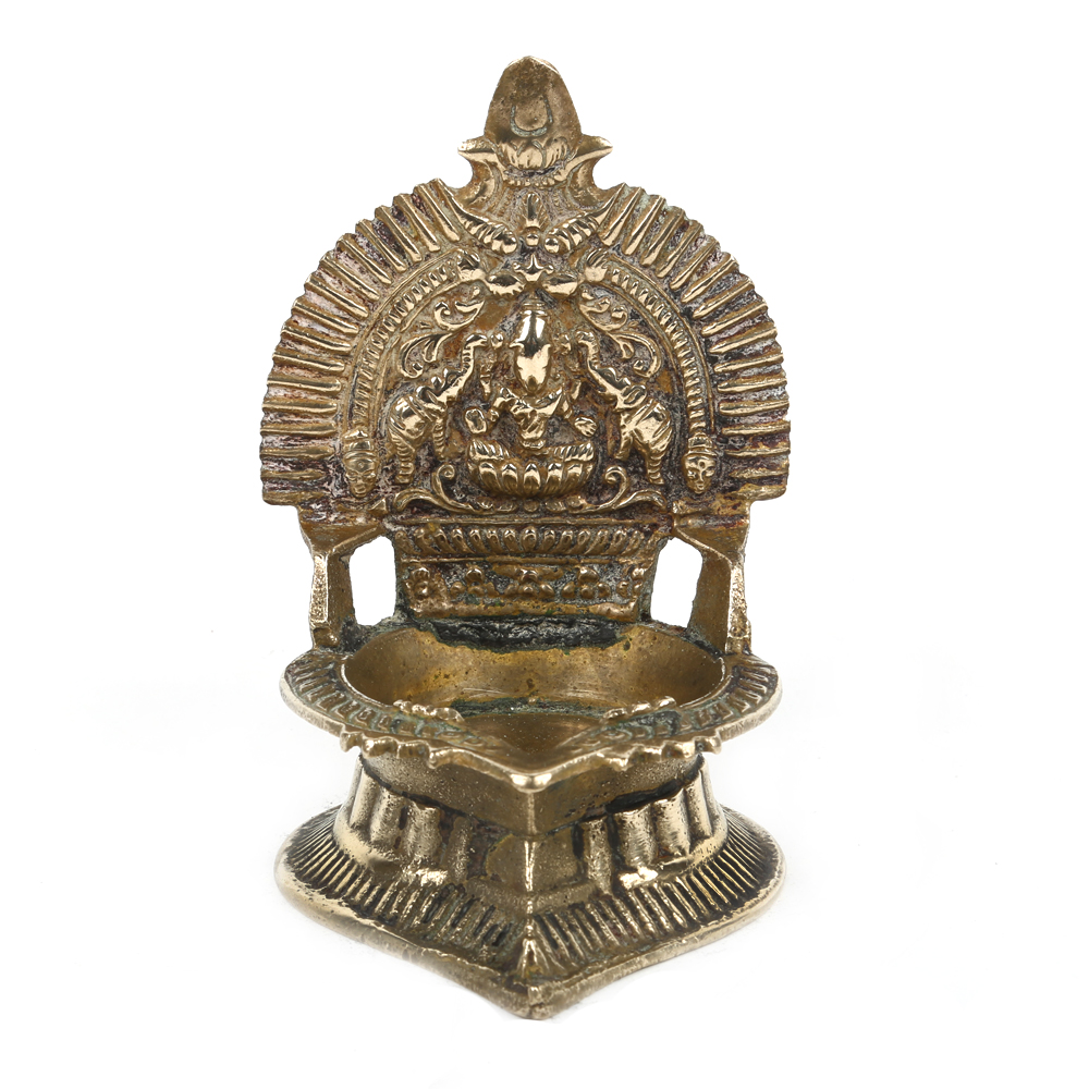 Goddess Lakshmi Figure Holy Worship Oil Lamp. It is Made by Lost Wax Process. Adds Spiritual Flavor to Your Decor. Vegetable Oil, Mustard Oil or Desi Ghee can be Use to Light the Lamp with Cotton Wicks.