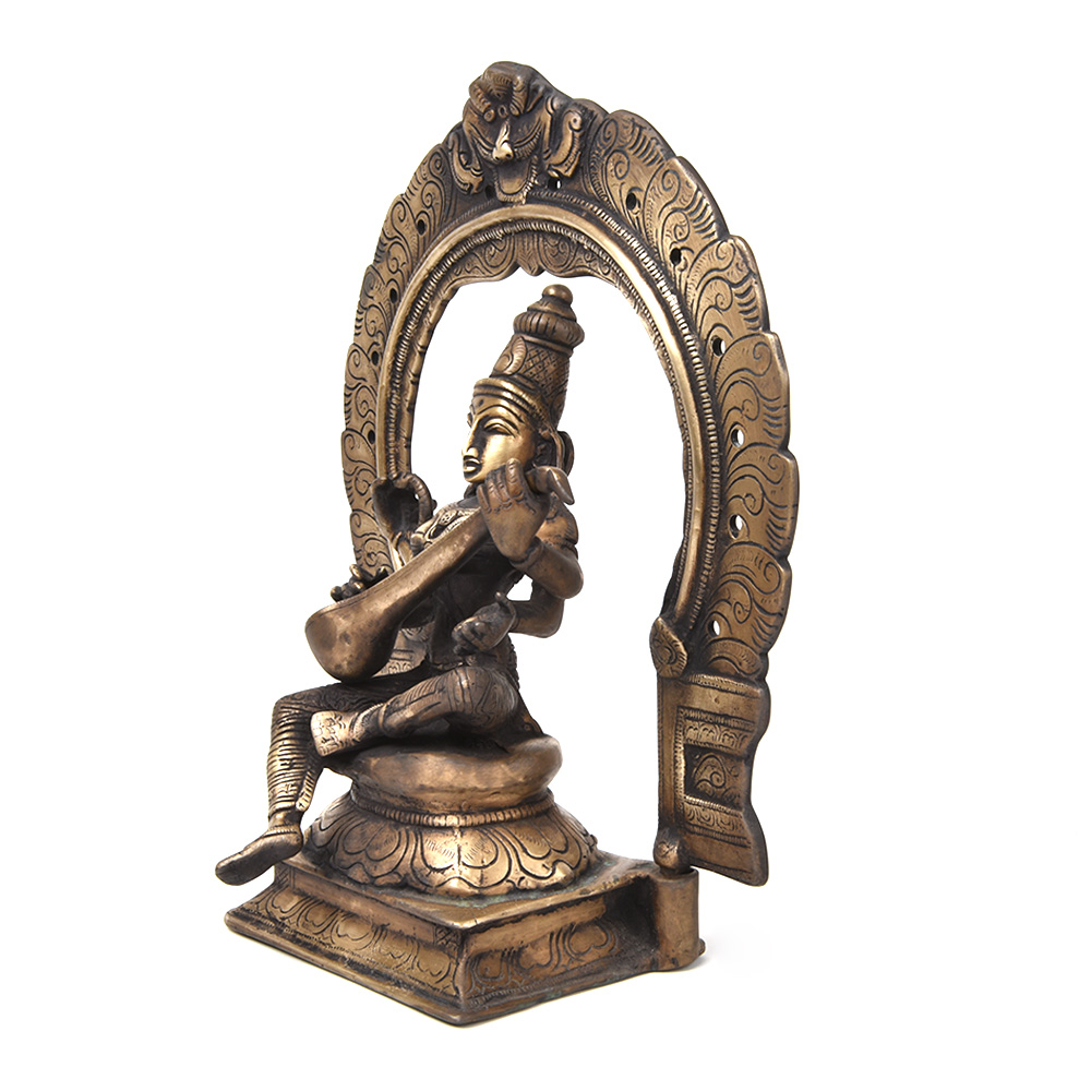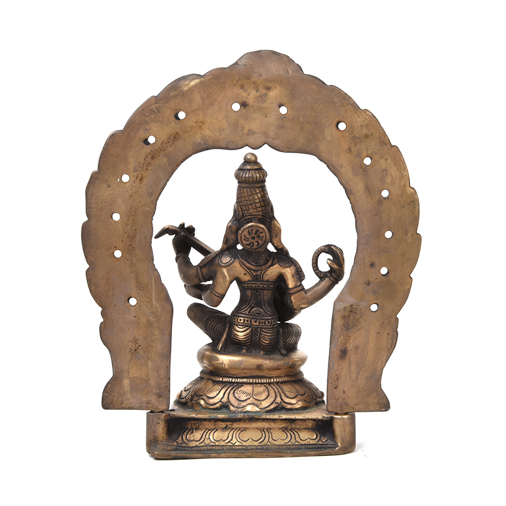 Goddess Saraswati Playing Veena with Floral Aureole.