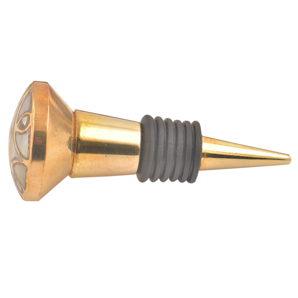 Gold Embroidered Metal Wine Stopper. Zinc Alloy Wine Bottle Stopper with Attractive Jute Bag Packaging.