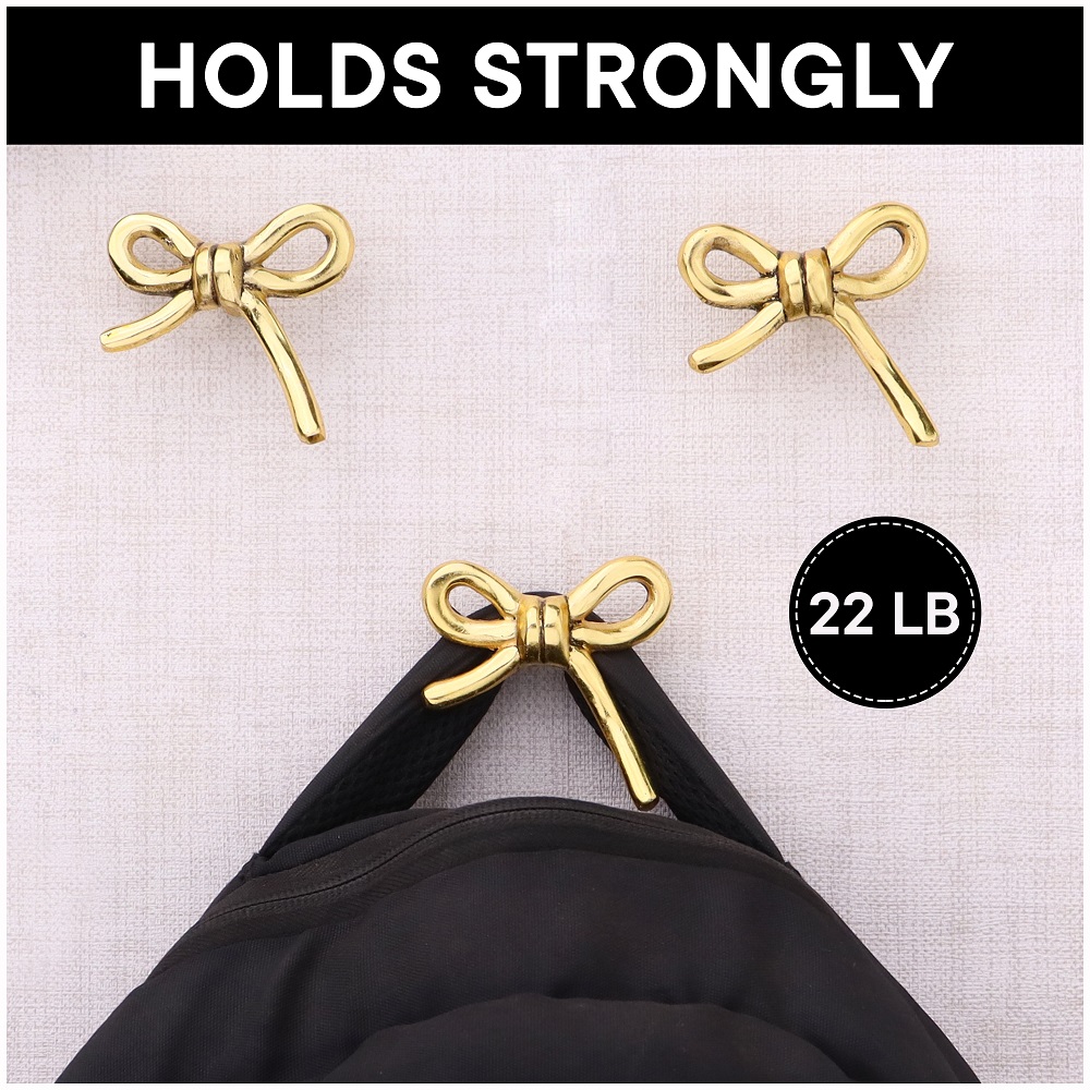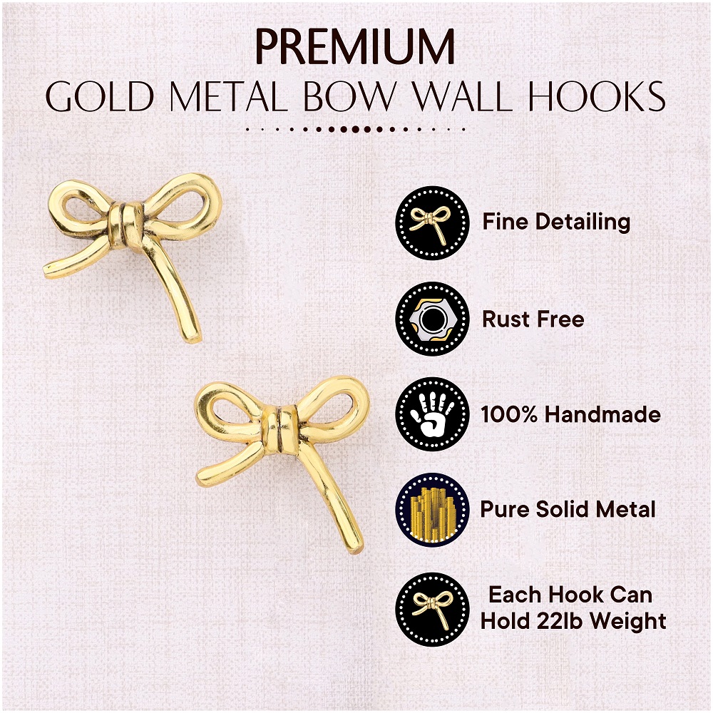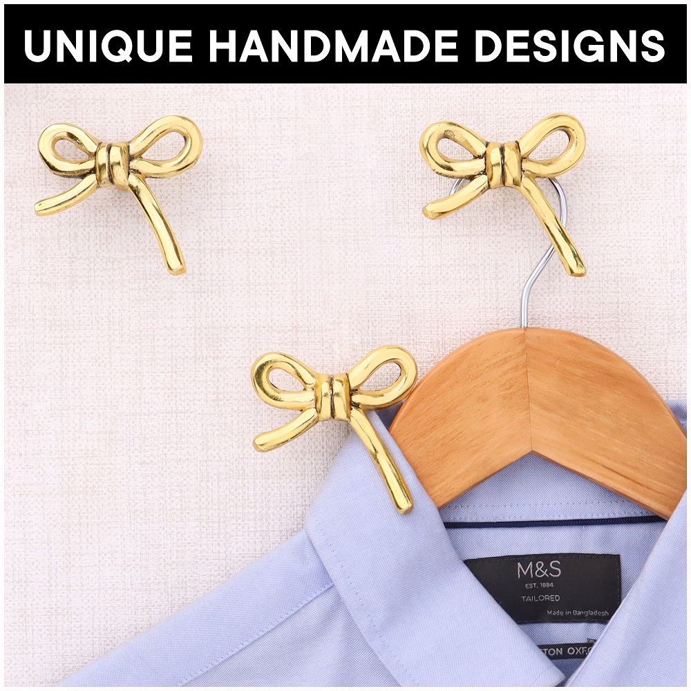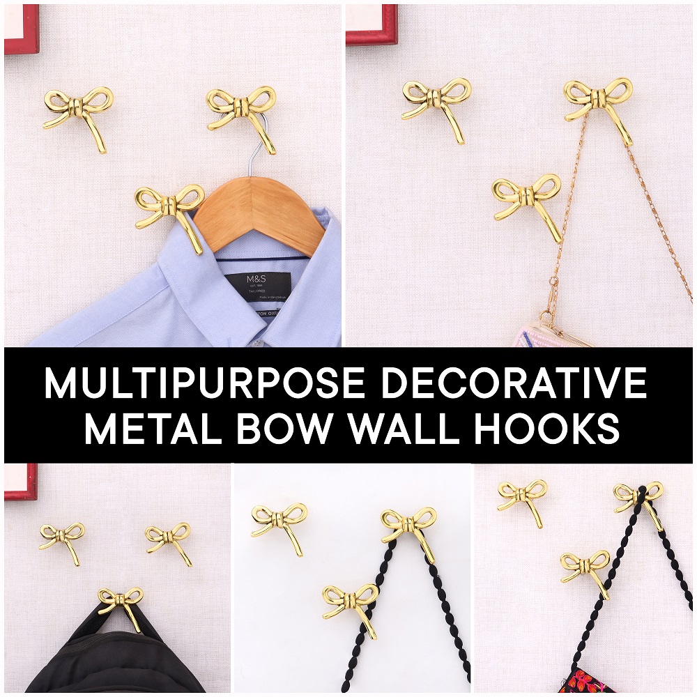 Gold Bow Metal Wall Hooks . This Hook is Strong Enough to Hold Your Cloths, Keys, Tea Cups, Coffee Mugs, Hand Towels Etc.