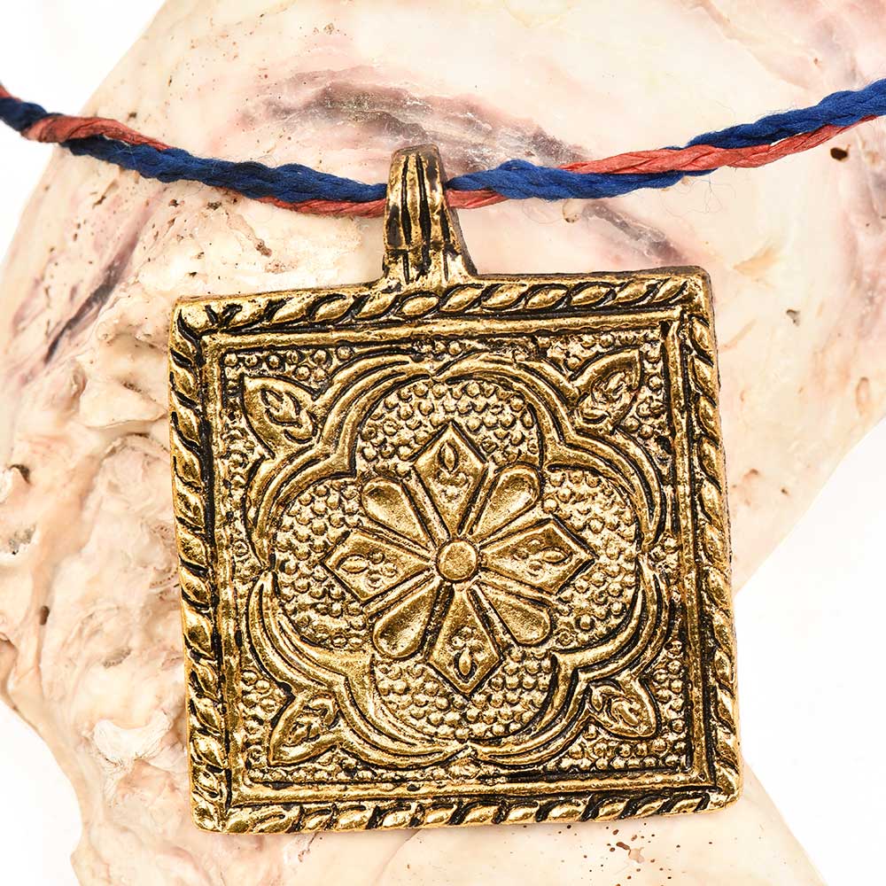 Step into the world of handcrafted tribal artistry with this Golden Aluminum Metal Pendant, beautifully designed in a Square Shape with Intricate Flower Carving and Leafy Border. Each pendant is meticulously hand-engraved by artisans, merging the geometry of a square with the organic flow of floral and leafy motifs. The golden finish enhances its regal charm, making it a radiant accessory that blends cultural depth with contemporary sophistication.