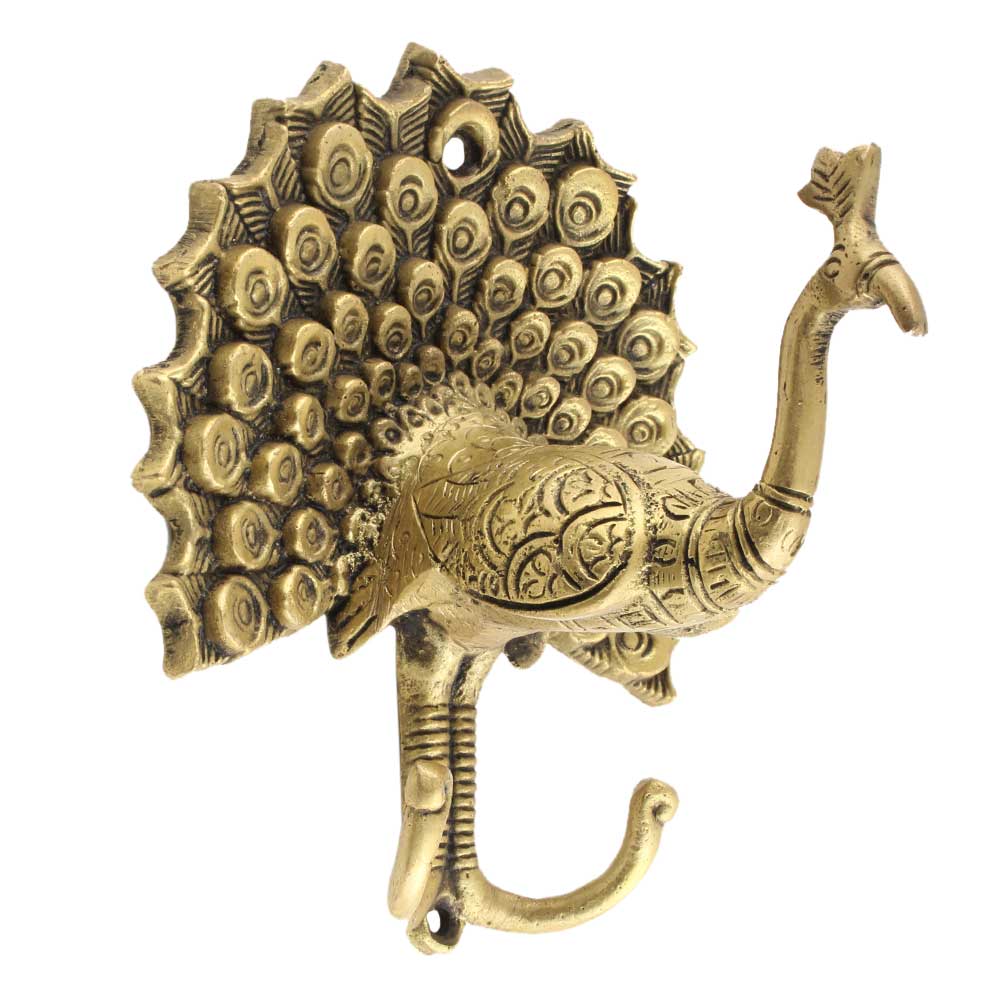 Golden Brass Decorative Wall Hook Hanger  Fuses Modern Design with Traditional Work that's Pleasing to the Eye and Also has Useful Functionality. This Hook is Strong Enough to Hold Your Cloths, Keys, Tea Cups, Coffee Mugs, Hand Towels Etc.