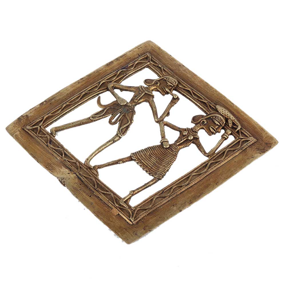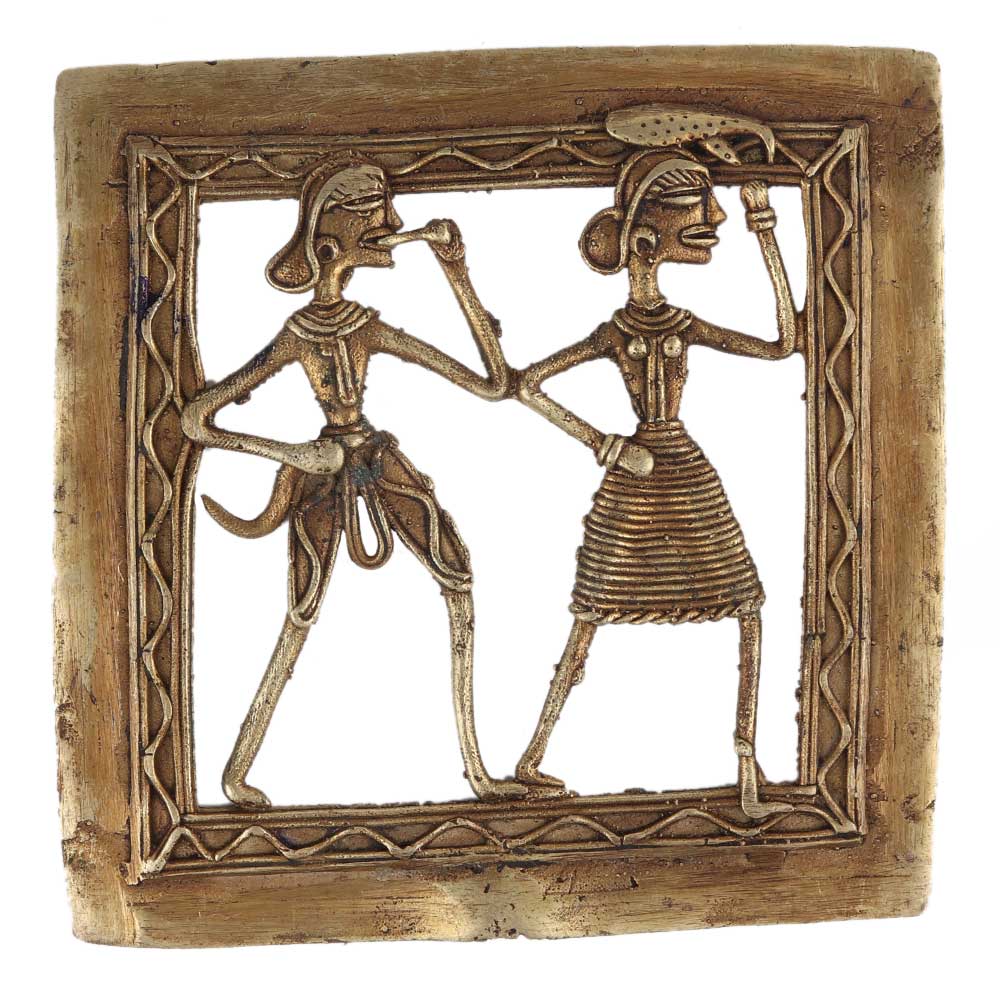 Brass Dhokra Art Wall Hanging of a tribal couple dancing and enjoying after a hard day at the fields. Home decoration, hotel and spa decoration , school and college g gallery decoration. Gift it to your near and dear ones.