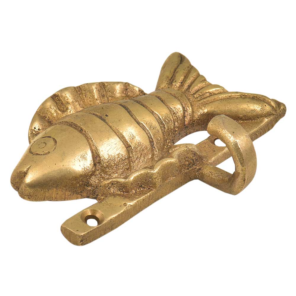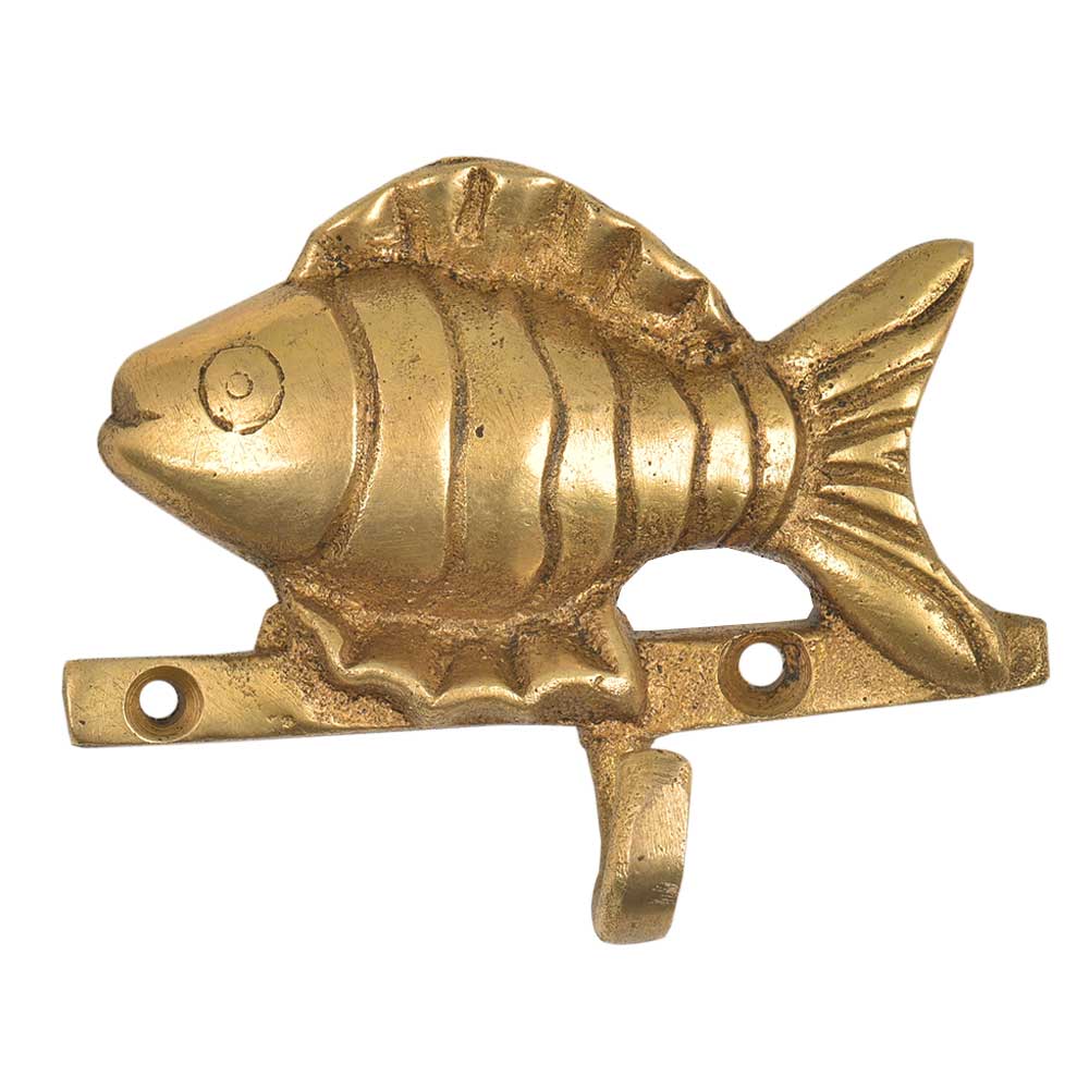Add a splash of nautical elegance to your space with the Golden Brass Fish Wall Coat Hook with Patina. Handcrafted from solid brass and finished with an aged golden patina, this artistic wall hook captures the sleek silhouette of a fish in motion—perfect for lovers of marine décor and vintage accents. Combining fine detailing with everyday functionality, this brass coat hook brings character, durability, and ocean-inspired style to any wall it adorns.