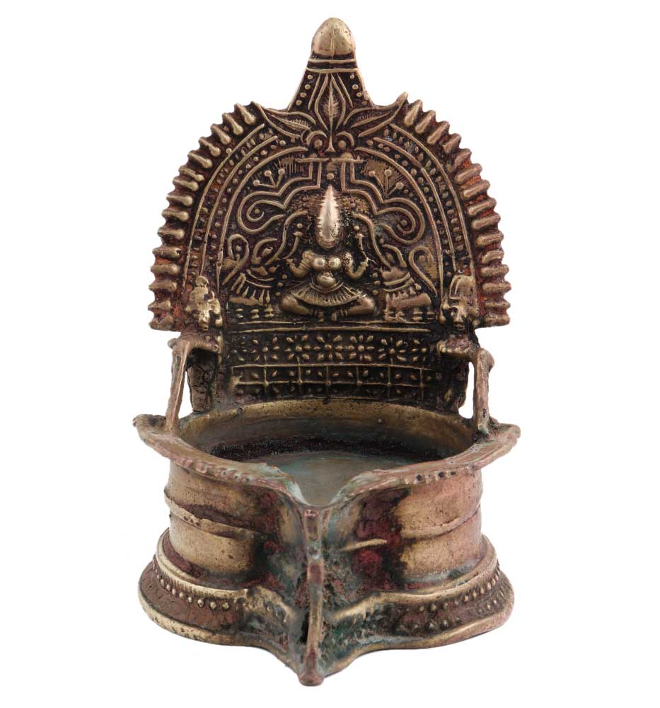 Specially Hand crafted Golden Brass Gaja Laxmi Lakshmi Lamp with beautiful engravings. Beautiful and heavy lamp ideal for daily home use. Diwali Gift, New year gift, house warming gift for your near and dear ones.