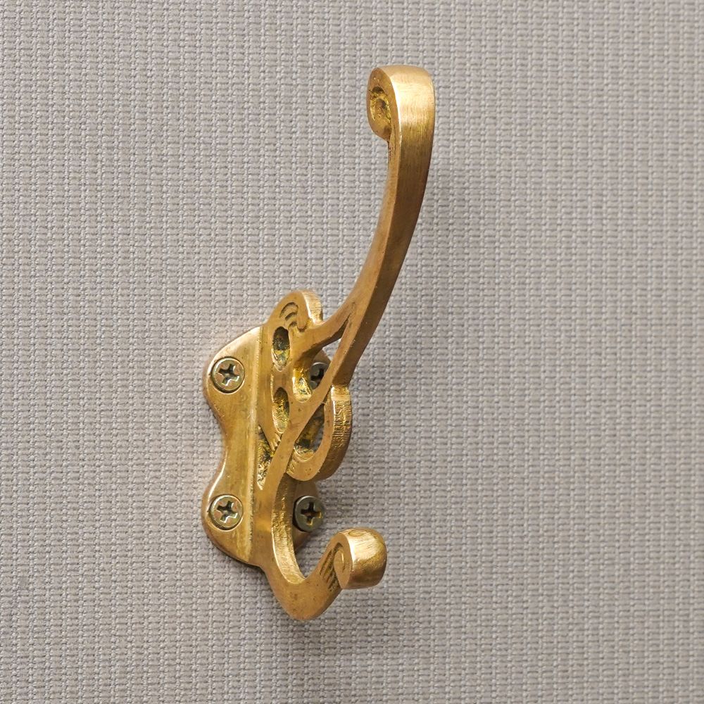 Add timeless charm to your home with the Golden Brass Nostalgic Entryway Coat Wall Hook. Handcrafted from solid brass, this wall hook is designed to bring both style and structure to your space. Inspired by classic vintage hardware, it features elegant curves, a rich golden finish, and a sturdy frame built for function. Whether you're styling a traditional hallway or updating a rustic mudroom, this coat hook offers the perfect mix of decorative detail and durable performance.