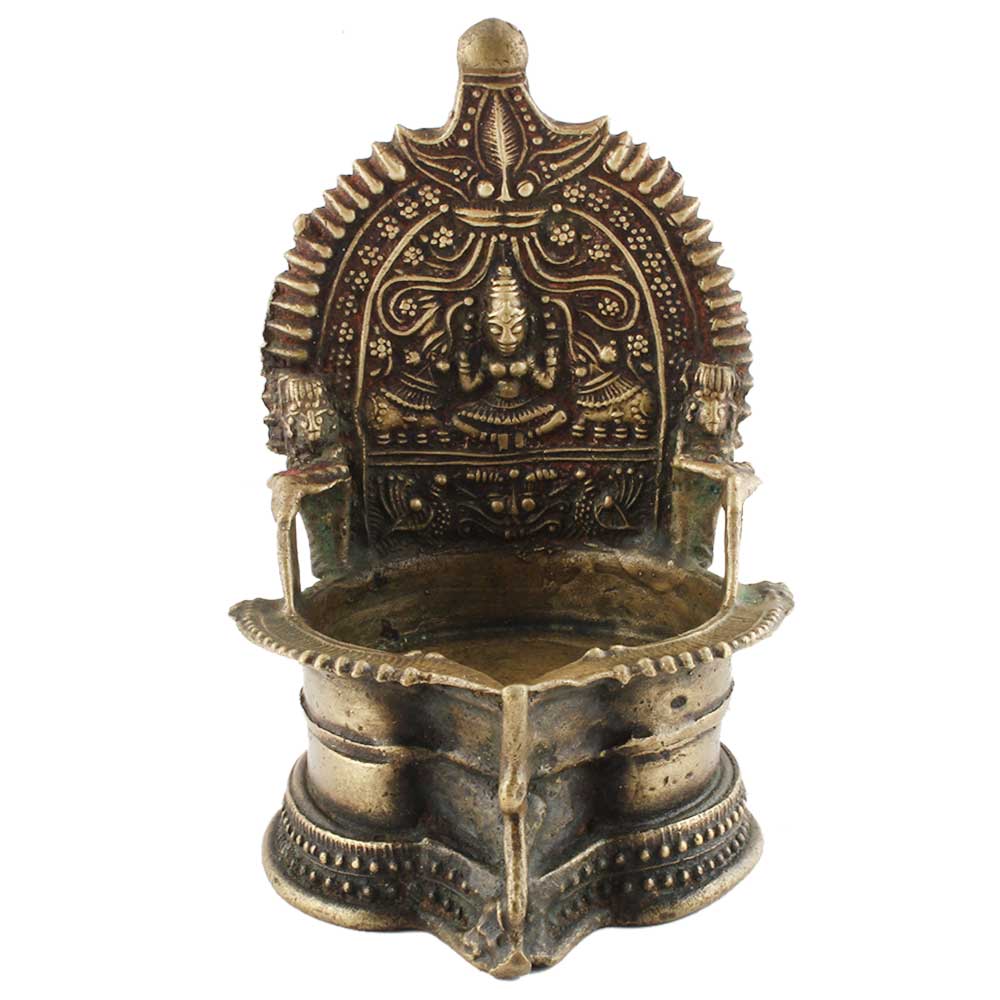 Handmade brass oil Lamp is made by lost wax process by tribal craftsmen. It Depicts Goddess Maha Lakshmi. Adds Spiritual Flavor to You Decor. Vegetable Oil, Mustard Oil or Desi Ghee can be Use to Light the Lamp with Cotton Wicks.