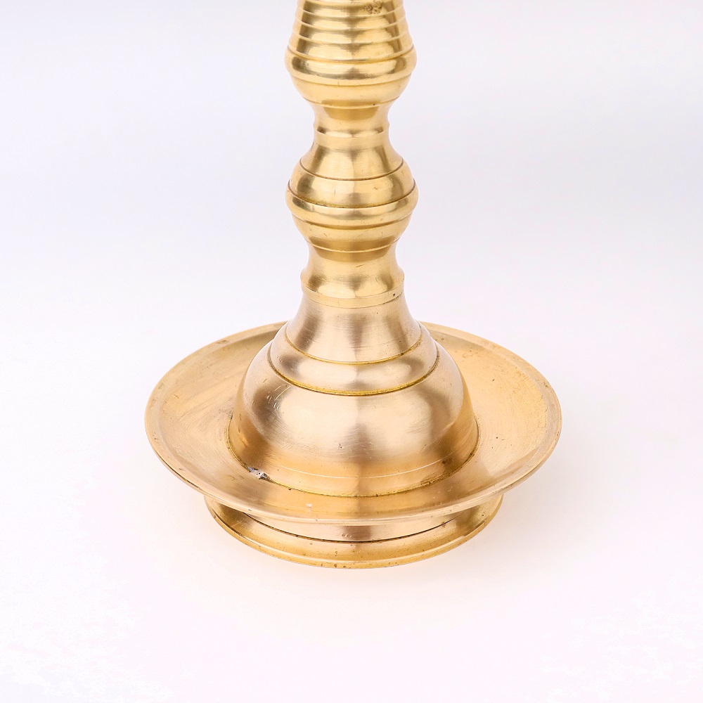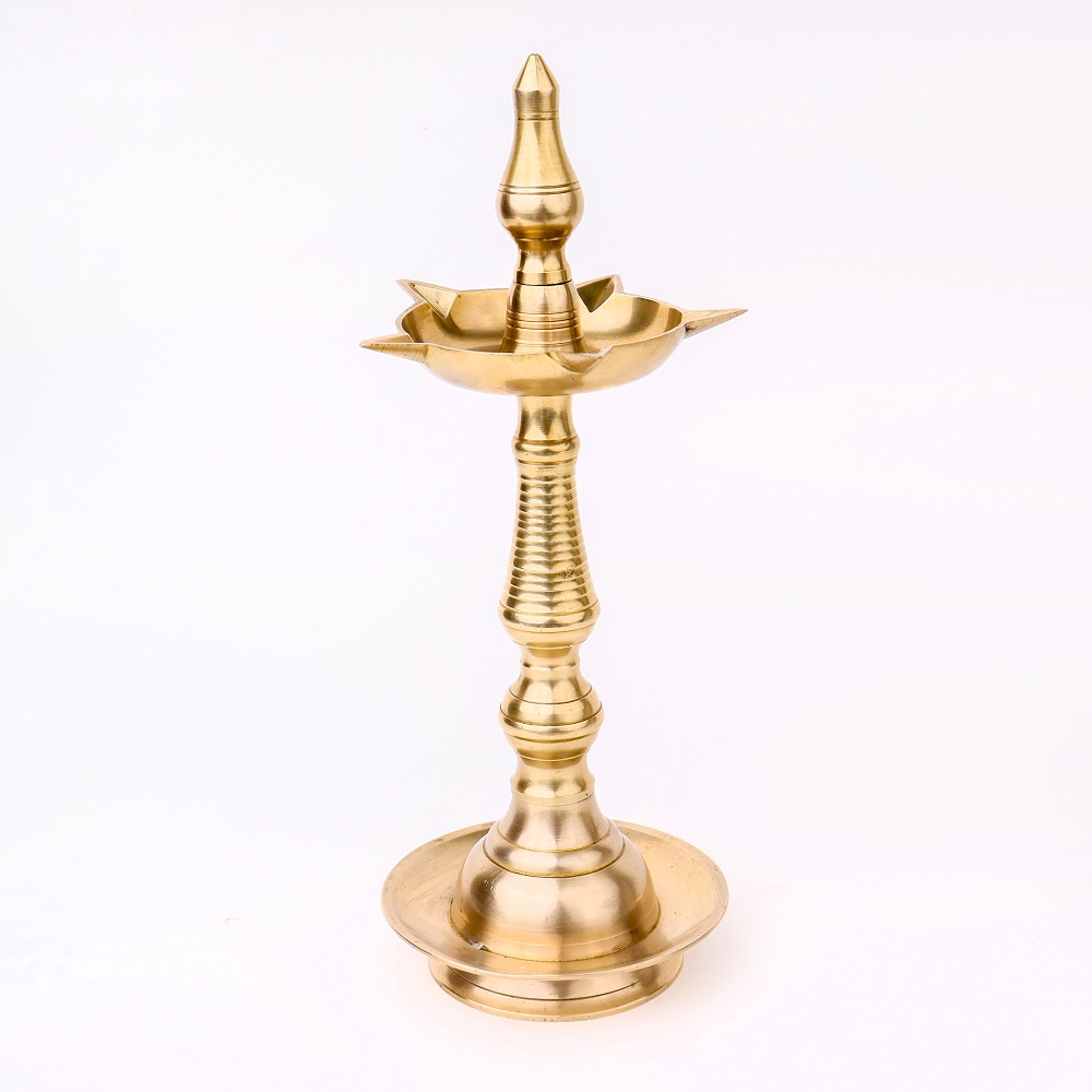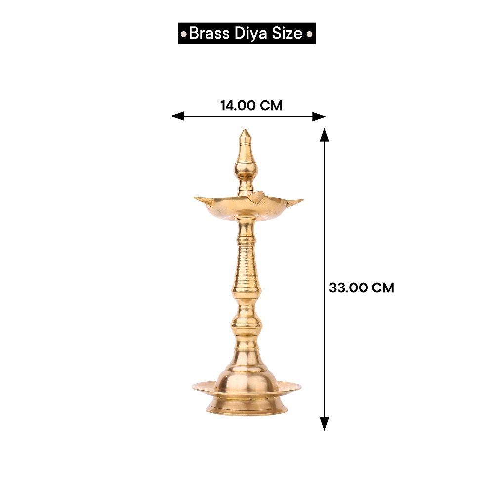 Embrace the splendour of this Brass Oil Lamp with 5 Jyots, a true embodiment of craftsmanship, spirituality, and timeless beauty. A timeless piece that embodies the rich cultural heritage of India. Crafted with utmost precision by professional Indian artisans, this lamp is a testament to their mastery and devotion. Its gleaming golden finish, made possible by the use of high-quality brass, immediately captivates the beholder, making it an enchanting addition to any space. Designed for both functional and decorative purposes, this lamp can accommodate five cotton wicks soaked in either fragrant mustard oil or traditional desi ghee. When lit, the warm glow emitted by the flames illuminates the surroundings, creating a serene and sacred ambiance. The lamp also features a majestic lingam on the top, symbolizing divinity and spirituality. Versatile in its application, this lamp is commonly used during aarti ceremonies at temples and during Pooja rituals at homes and offices. Moreover, it serves as an incredible gift option for family, friends, or relatives, especially during special, festive, or auspicious occasions.