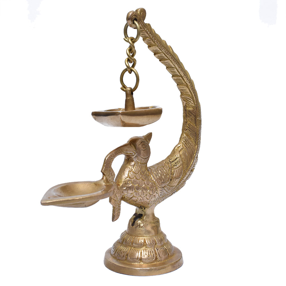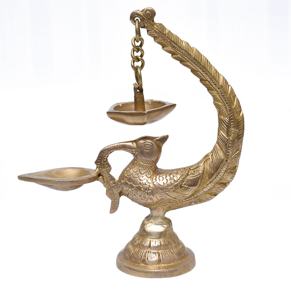 Add a decorative touch to your home with this handmade Peacock brass showpiece with diya for 6 wicks. This Diya is elegantly designed and has a distinct antique appearance. This stunning and exquisite figure is ideal for your home decor. It's made of brass and has an antique finish. It's a lovely keepsake for your home and a one-of-a-kind gift for your loved ones. This Deepak or Diya designer is more than just a Diya; it is a multifunctional decorative adornment for all modern homes. The lovely diya is bright and lovely for any temple or home, and it has been handcrafted using both modern and traditional techniques.