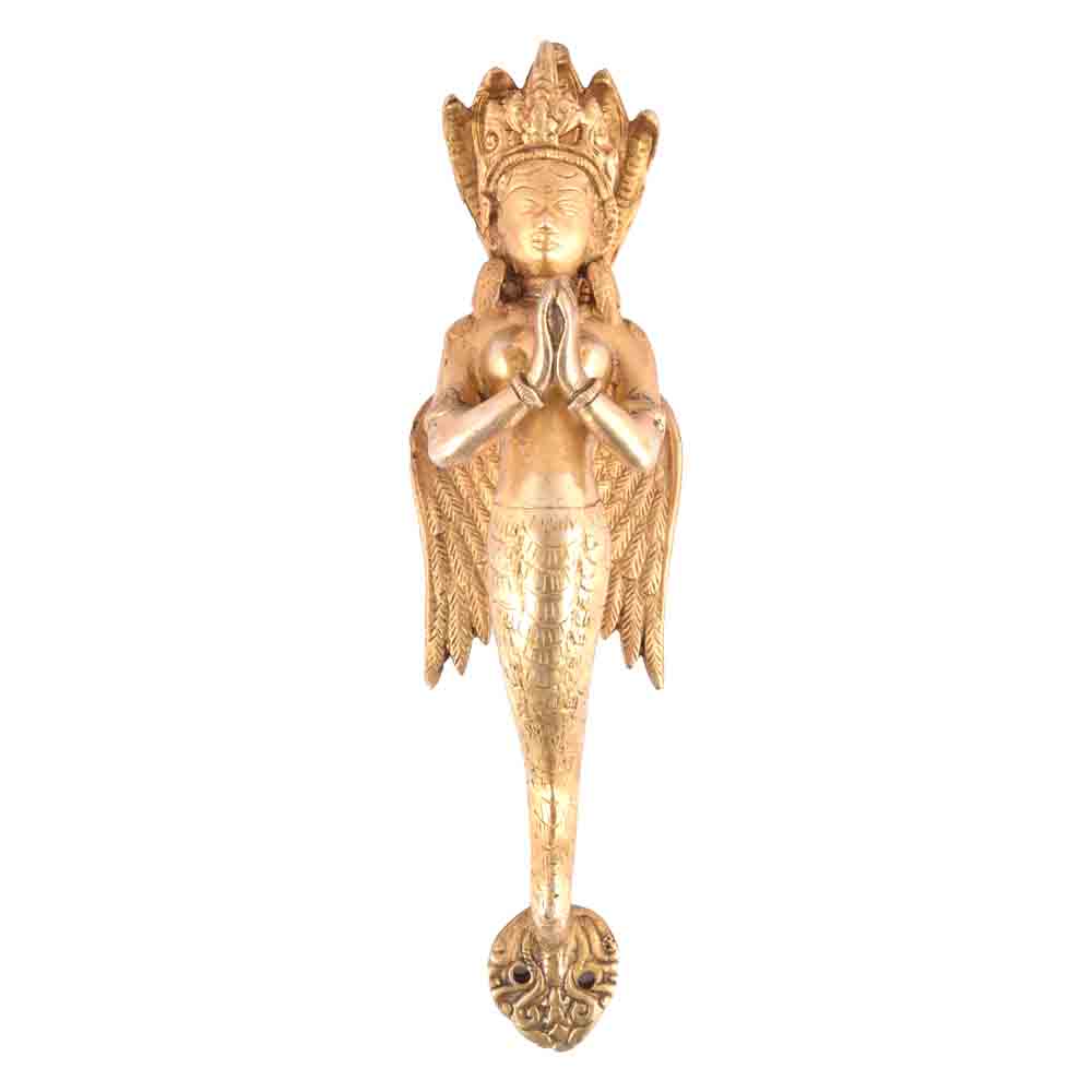 Golden Brass Praying Nagini Goddess Door Handle. Ideal for Drawer, Dresser, Cabinet, Wardrobe, Cupboard and Almirah.