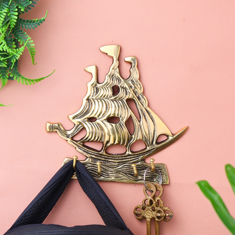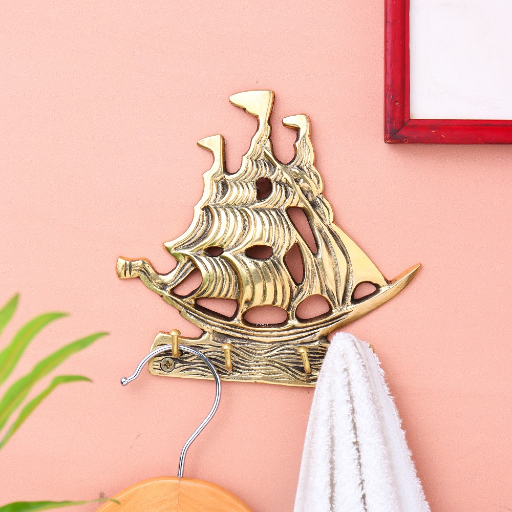 Golden Brass Ship Wall Hook .This Hook is Strong Enough to Hold Your Bags, Hand Towels, Cloths Etc.