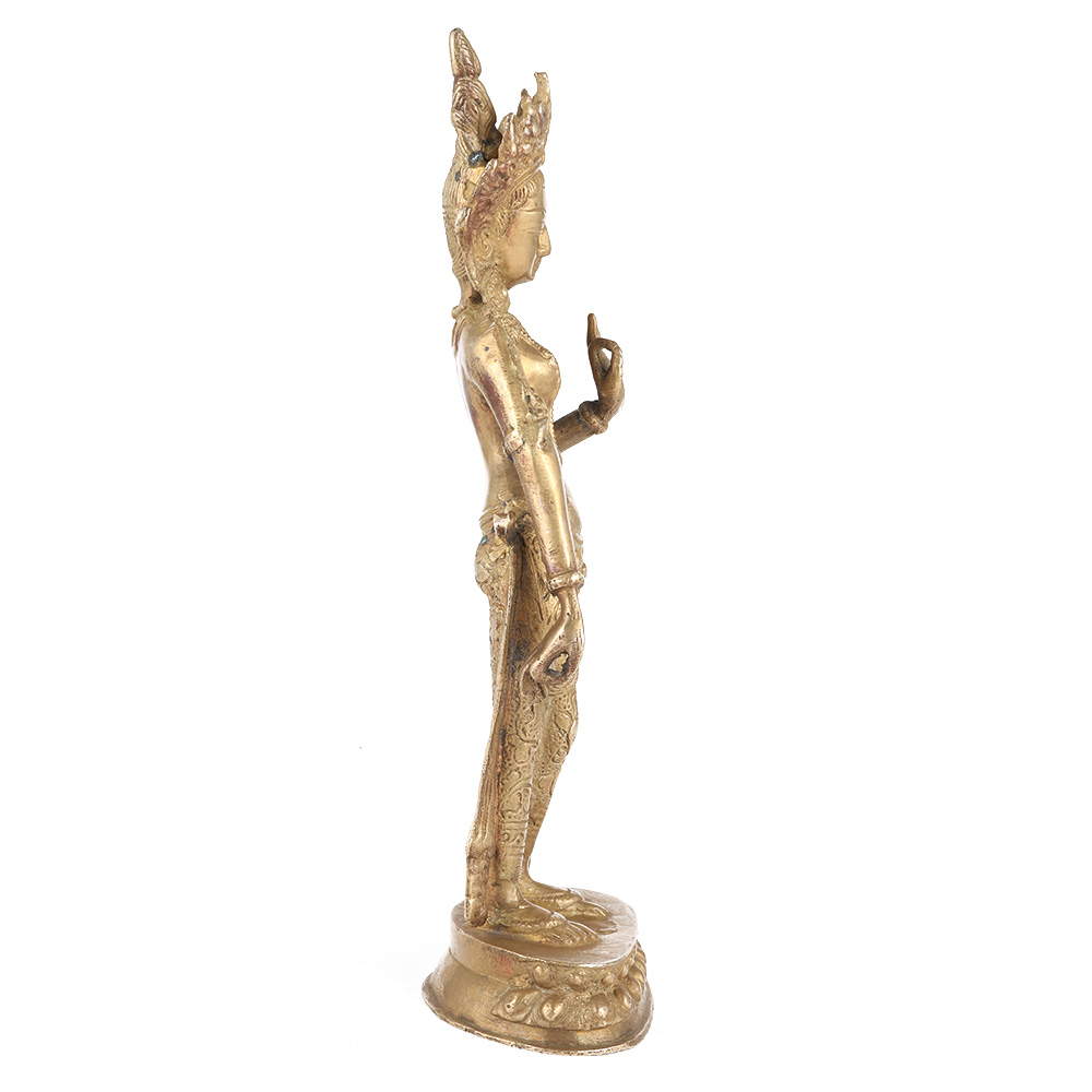 The Golden Brass Tara Dei Statue is made using environmentally conscious methods, ensuring that the materials and techniques used in its creation are sustainable. This makes it not only a meaningful purchase but also an eco-friendly one, aligning with values of responsibility and care for the earth.