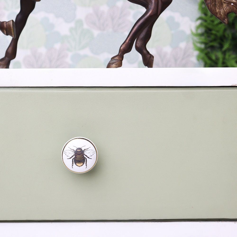 Whether your home is contemporary, rustic, or vintage-inspired, the Golden Bumble Bee Flat Ceramic Cabinet Knob will complement a variety of interior styles. Its subtle elegance and natural motif make it a versatile addition to your furniture.