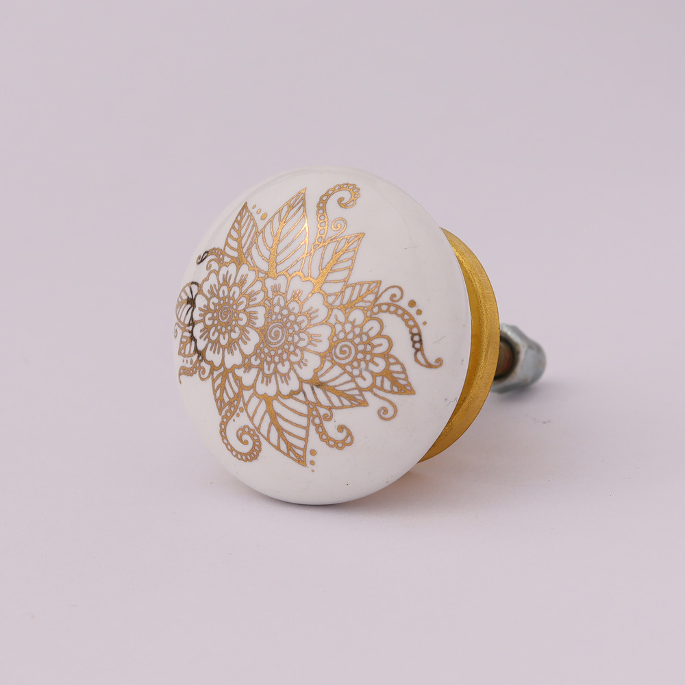 The gold accents framing the floral design provide a refined touch, making this knob a standout feature. The smooth ceramic base ensures durability while offering a glossy finish that highlights the intricate floral details. The combination of the soft floral motif and luxurious gold creates a harmonious balance of elegance and charm.