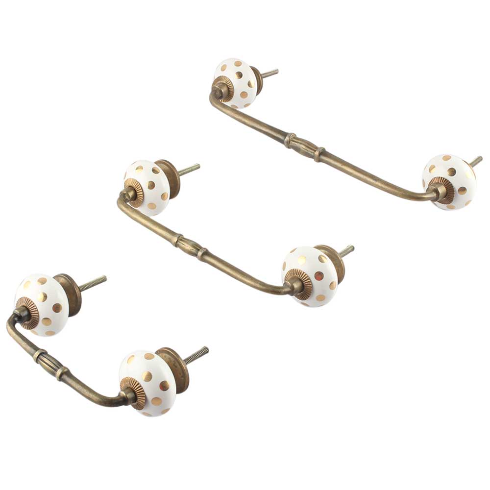 Golden Dot Ceramic Bridge Handle. Ideal for Drawer, Dresser, Cabinet, Wardrobe, Cupboard and Almirah.
