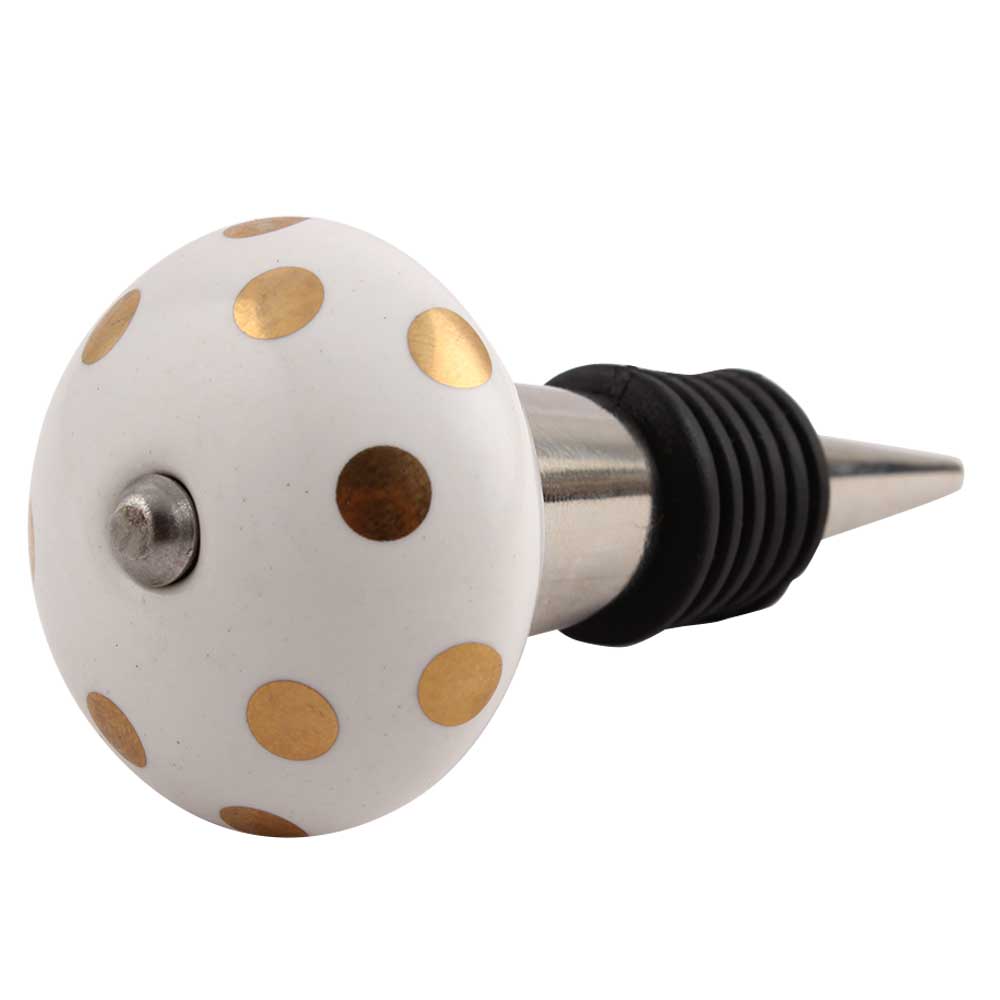 Golden Dot Ceramic Wine Stopper.zinc alloy wine bottle stopper with attractive Jute Bag Packaging.
