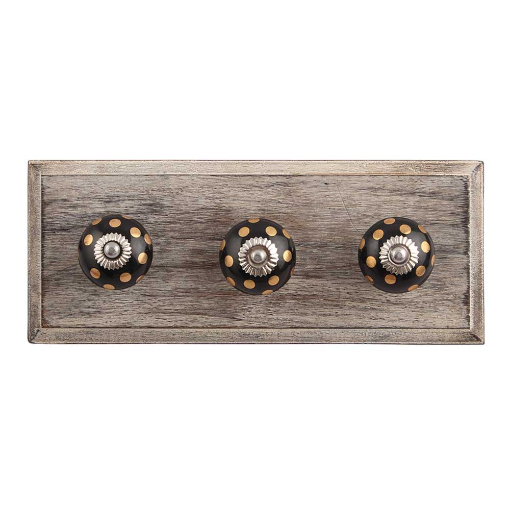 Golden Dot Ceramic Wooden Hook. A Perfect Complement to the Soft Tone of the Wood are these White Traditional Hat & Coat Hook Made of Genuine Porcelain and Brass. It can be use to Hang Jewellery, Leashes, Towels, Scarves, Light Weight Sweaters, Caps Etc.