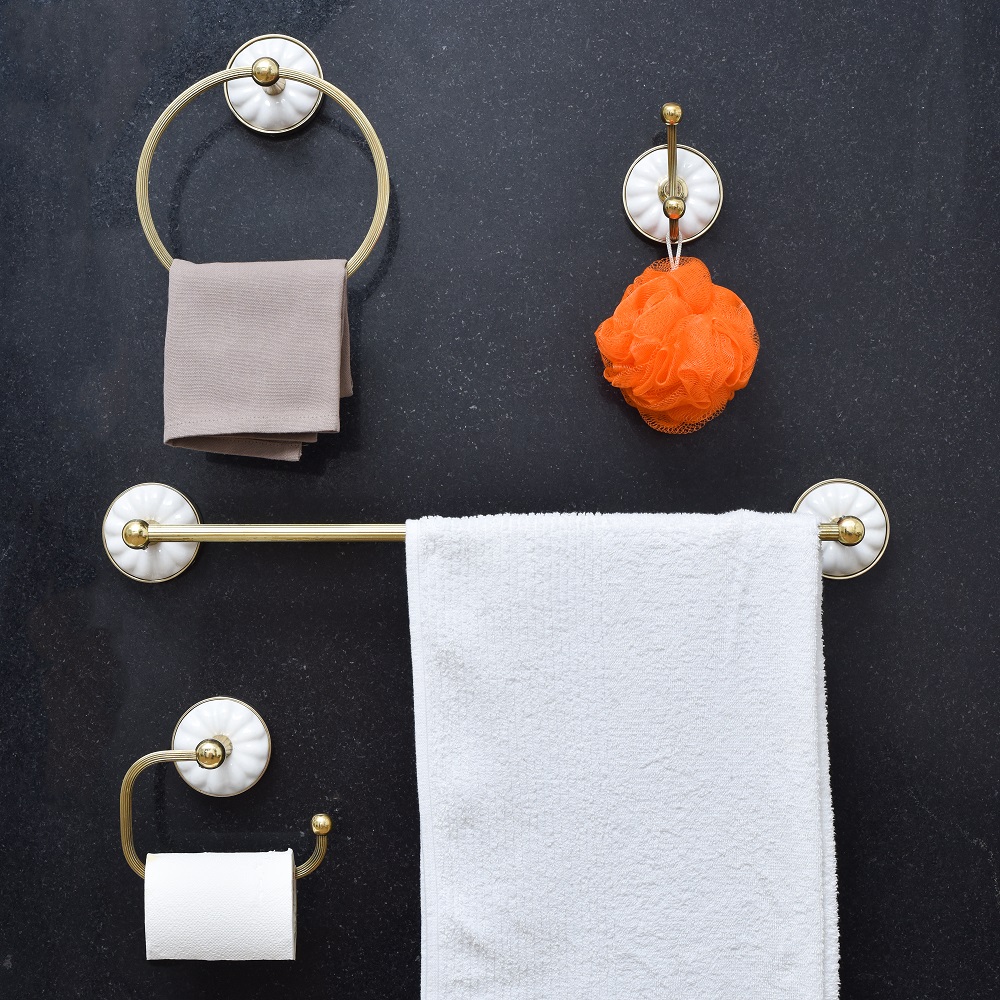 The classic blend of golden brass and ceramic makes this towel hanger perfect for both modern and traditional bathroom designs. Its timeless look will seamlessly integrate into your existing decor, creating an elegant and functional space.
