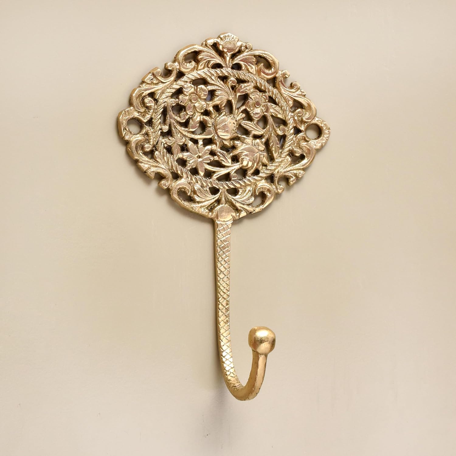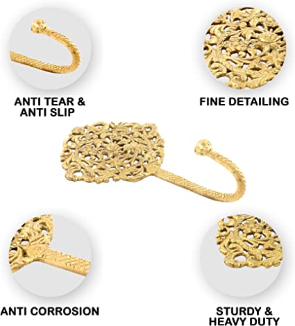 Golden Floral And Leaf Wall Brass Decorative Hook. When Put on Wall or Cabinet It is An Art in Itself. This Hook is Strong Enough to Hold Your Cloths, Keys, Tea Cups, Coffee Mugs, Hand Towels Etc.