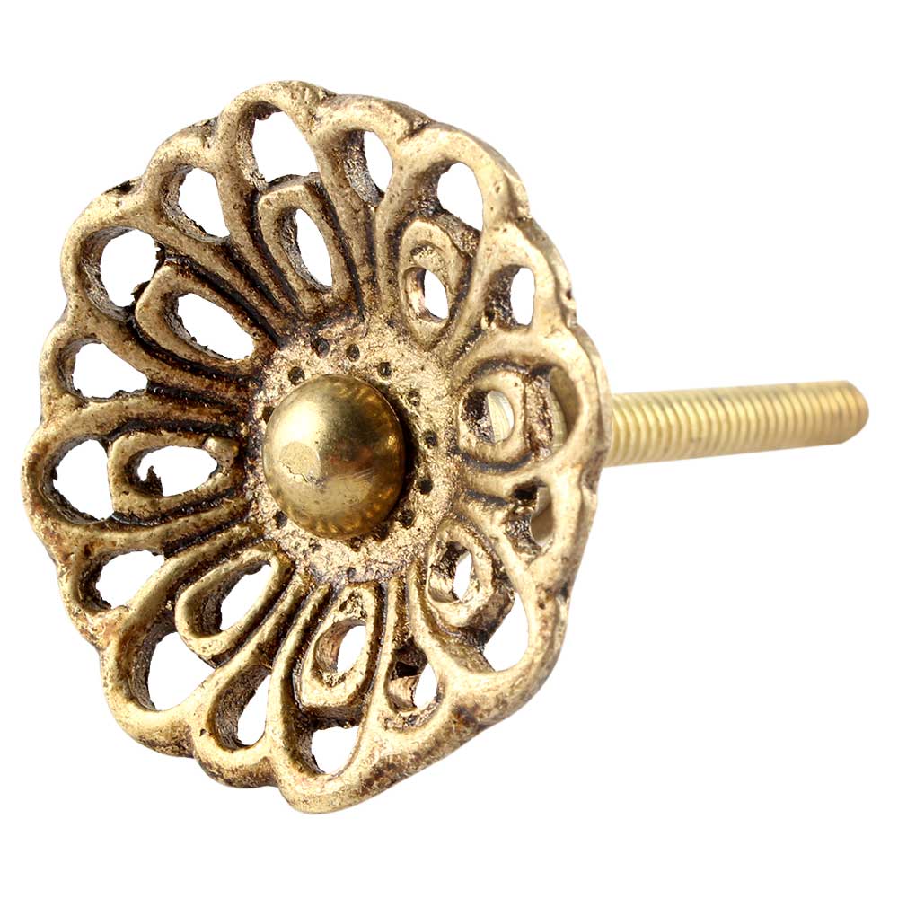 The intricate floral pattern that adorns the surface of this knob creates a beautifully detailed texture, giving it a luxurious and sophisticated feel. The golden finish adds warmth and elegance, making it an excellent choice for enhancing your home decor.