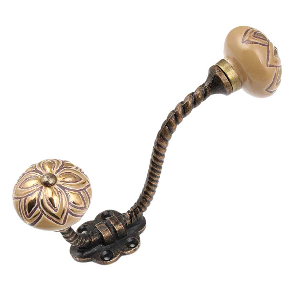 Golden Flower Ceramic Antique Rope Iron Hook.When Put on Wall or Cabinet It Gives A Sturdy Look. This Hook is Strong Enough to Hold Your Cloths, Keys, Tea Cups, Coffee Mugs, Hand Towels etc.