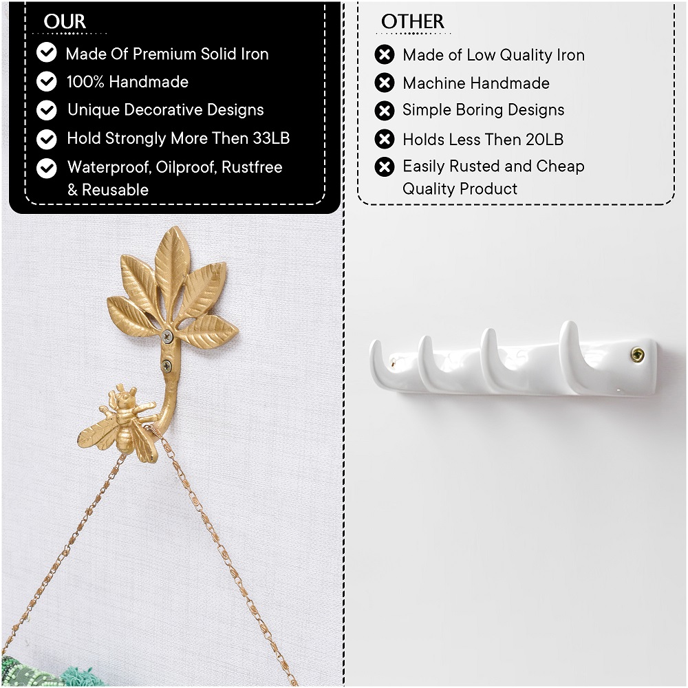 1. Strong and Reliable 2. Eye-Catching Nature-Inspired Design 3. Long-Lasting Build 4. Easy to Clean & Low Maintenance Group multiple bee hooks together at staggered heights for a fun and functional wall display—perfect for kids' rooms or eclectic décor lovers.