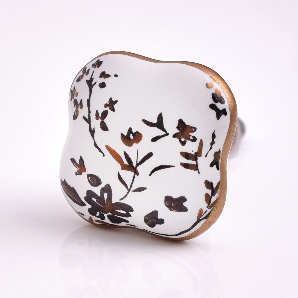Elevate your furniture with the elegant Golden Leaf Flower Square Ceramic Cabinet Knob. This knob showcases a beautifully designed golden leaf and floral motif on a square ceramic base, bringing a vintage-inspired charm to any space. Ideal for cabinets, drawers, and doors, it seamlessly blends timeless beauty with practicality.