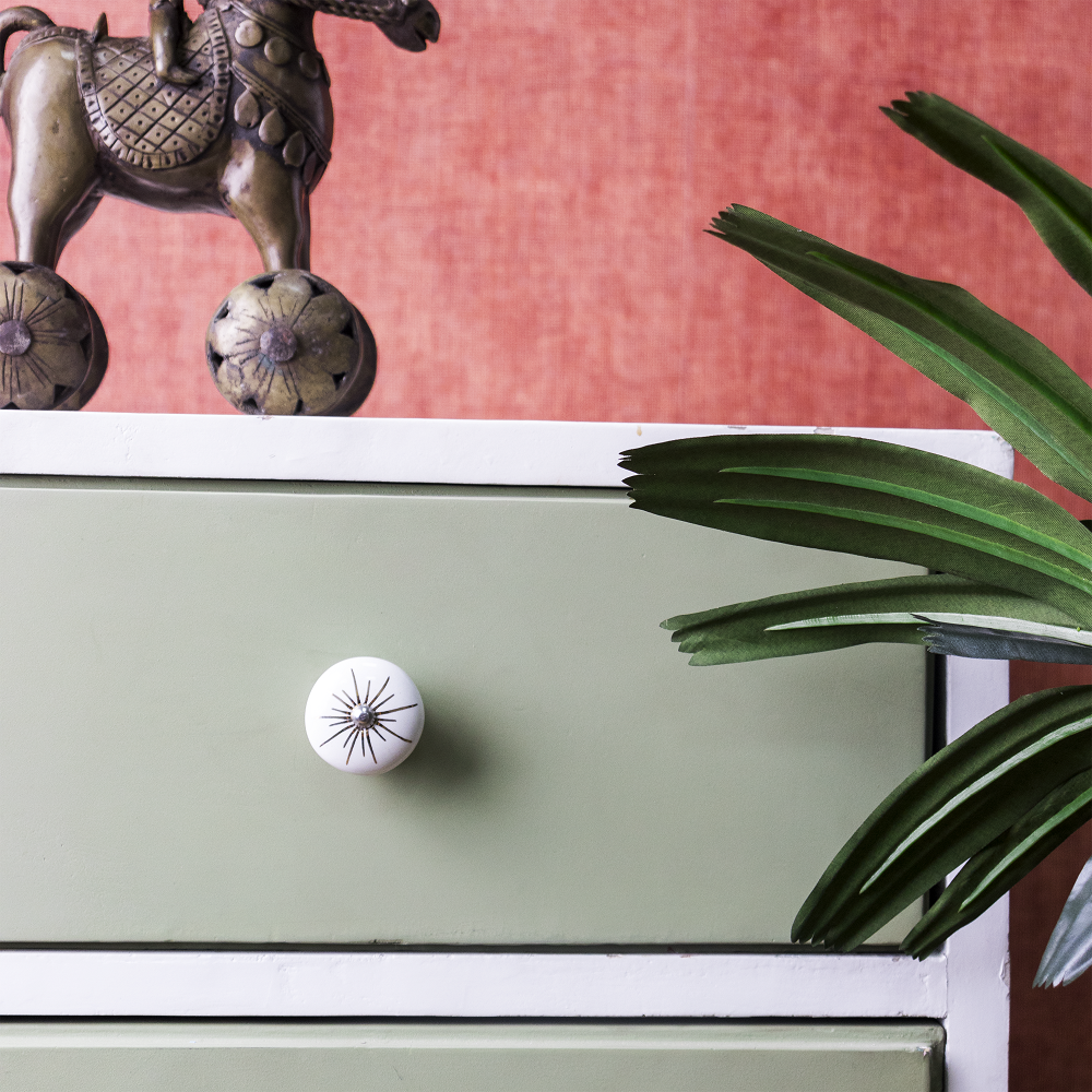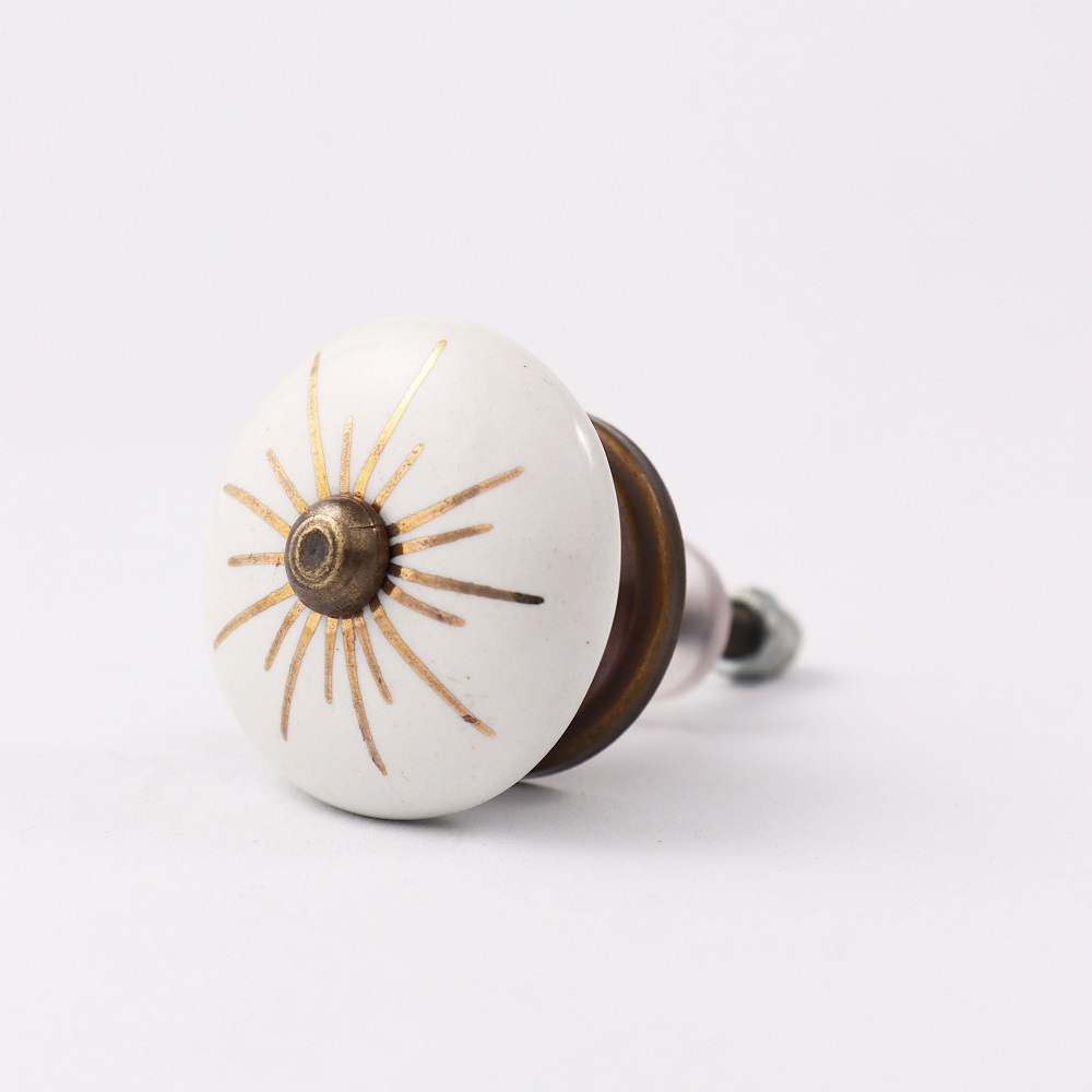 Golden Lines Decorative Ceramic Cabinet Knob. Ideal for Drawer, Dresser, Cabinet, Wardrobe, Cupboard and Almirah.