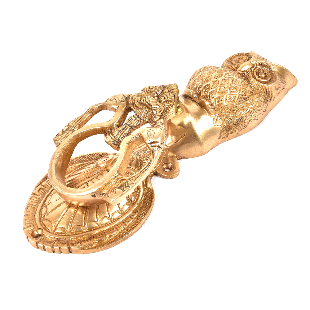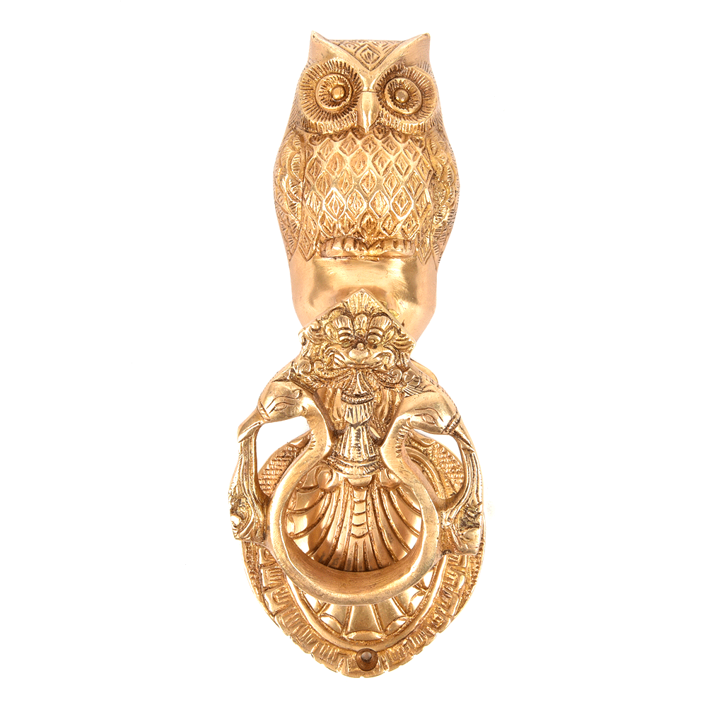 Golden Owl Brass Peacock On Both Sides Of Door Knocker. Ideal for your main doors.