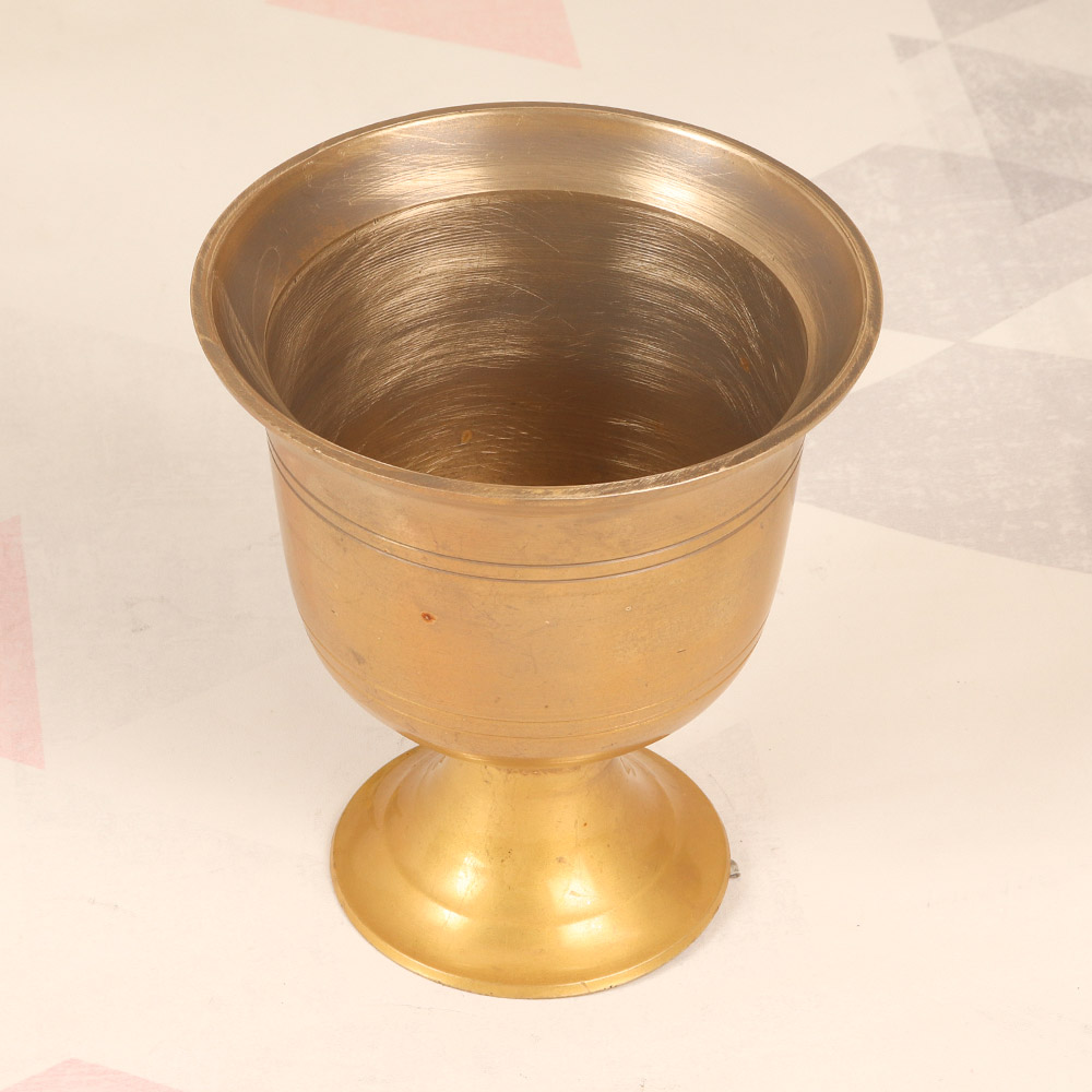 Elevate your living space with this exquisite brass flower pot, a testament to the rich artistic traditions of South India. Crafted with meticulous attention to detail, this unique cup-shaped container exudes a vintage charm that will instantly captivate and inspire. This brass flower pot is more than just a functional piece - it's a work of art that celebrates the cultural heritage of South India. The plain brown finish creates a timeless, elegant aesthetic, allowing the intricate craftsmanship to take center stage. Whether you choose to display your favorite blooms or use it as a captivating decorative accent, this flower pot will transform any space into a serene oasis of beauty. Embrace the beauty of South Asian artistry and bring a touch of timeless elegance into your home. This brass flower pot is the perfect addition for nature enthusiasts, plant lovers, and anyone with an appreciation for handcrafted, one-of-a-kind decor. Invest in a piece that will continue to delight and inspire you for years to come.