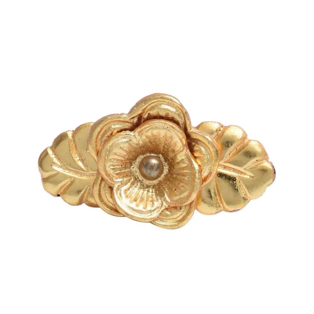 The Golden Rose Flower on Leaf Aluminum Knob brings a sophisticated and timeless floral design to your furniture. The combination of the golden rose with the delicate leaf pattern provides a luxurious touch to any piece, making it perfect for those who want to add a bit of elegance to their home décor.