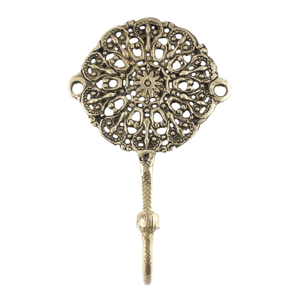 Golden Round Floral Wall Brass Decorative Hook. When Put on Wall or Cabinet It is An Art in Itself. This Hook is Strong Enough to Hold Your Cloths, Keys, Tea Cups, Coffee Mugs, Hand Towels Etc.