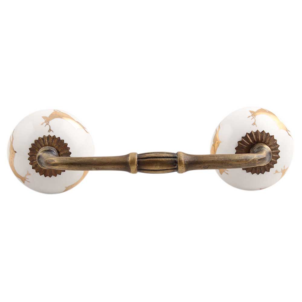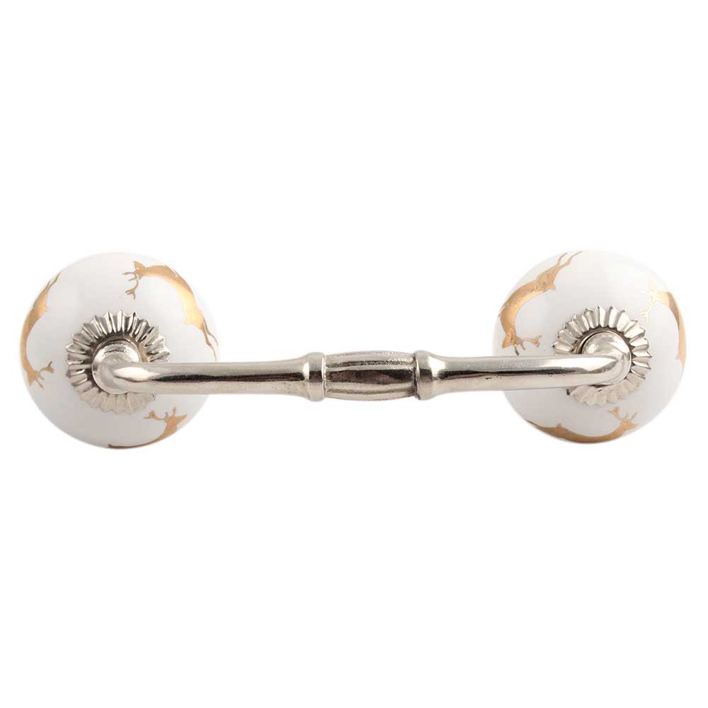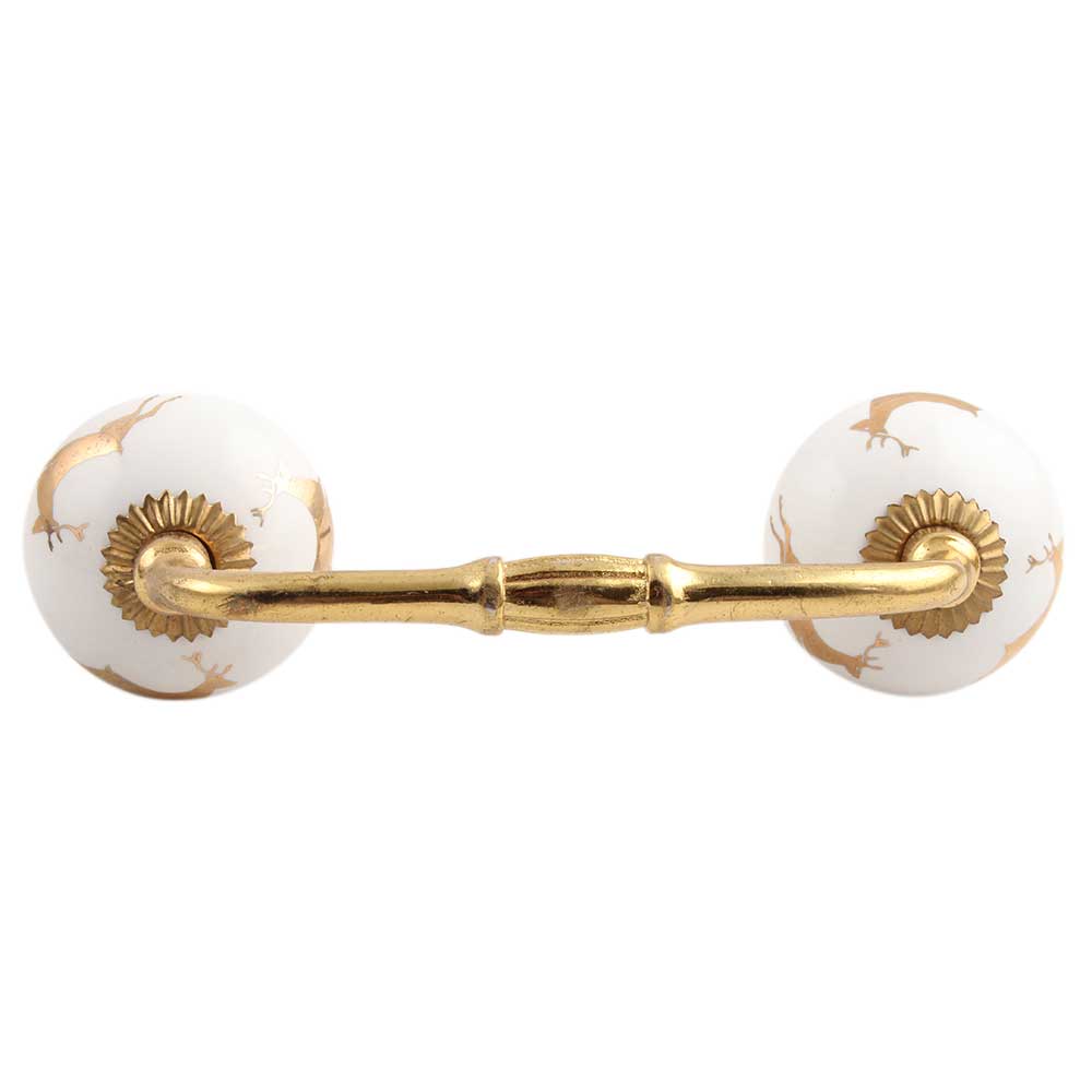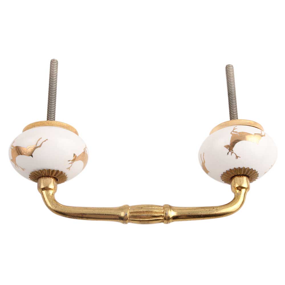 Golden Running Rein Deer Pattern Ceramic Bridge Handle. Ideal for Drawer, Dresser, Cabinet, Wardrobe, Cupboard and Almirah.