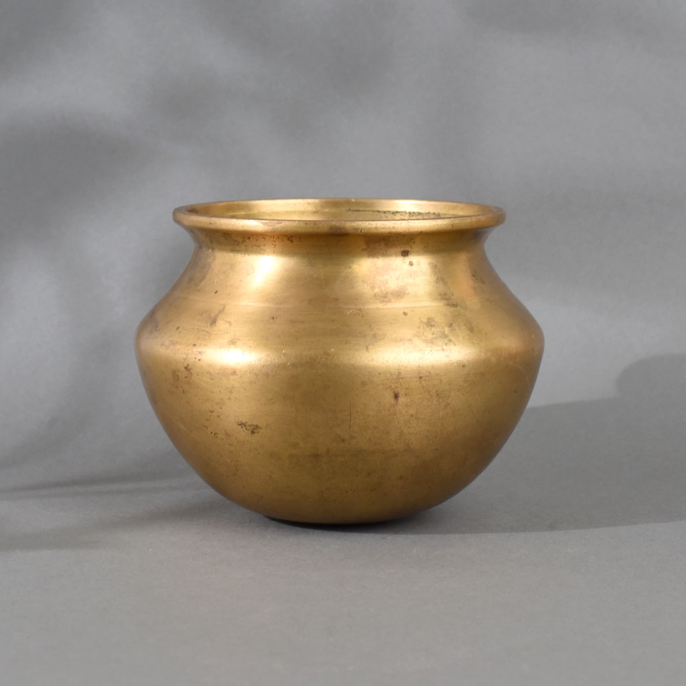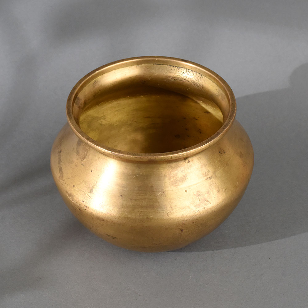 This traditional South Indian brass holy water pot is a beautifully crafted vessel, deeply rooted in the region’s spiritual and cultural practices. Often referred to as a kalash or lotta, this pot is used in Hindu rituals to hold sacred water (jal), symbolizing life, purity, and auspiciousness. Expertly handcrafted from high-quality brass, this pot features a rounded base, tapering neck, and flared lip—designed for easy handling during pujas and ceremonial use. The smooth, golden finish and subtle patina speak to its authenticity and heritage, making it a meaningful addition to home altars, temples, or cultural displays. Whether used in daily worship or as a decorative accent, this holy water vessel brings a sense of devotion, tradition, and timeless elegance to any setting.