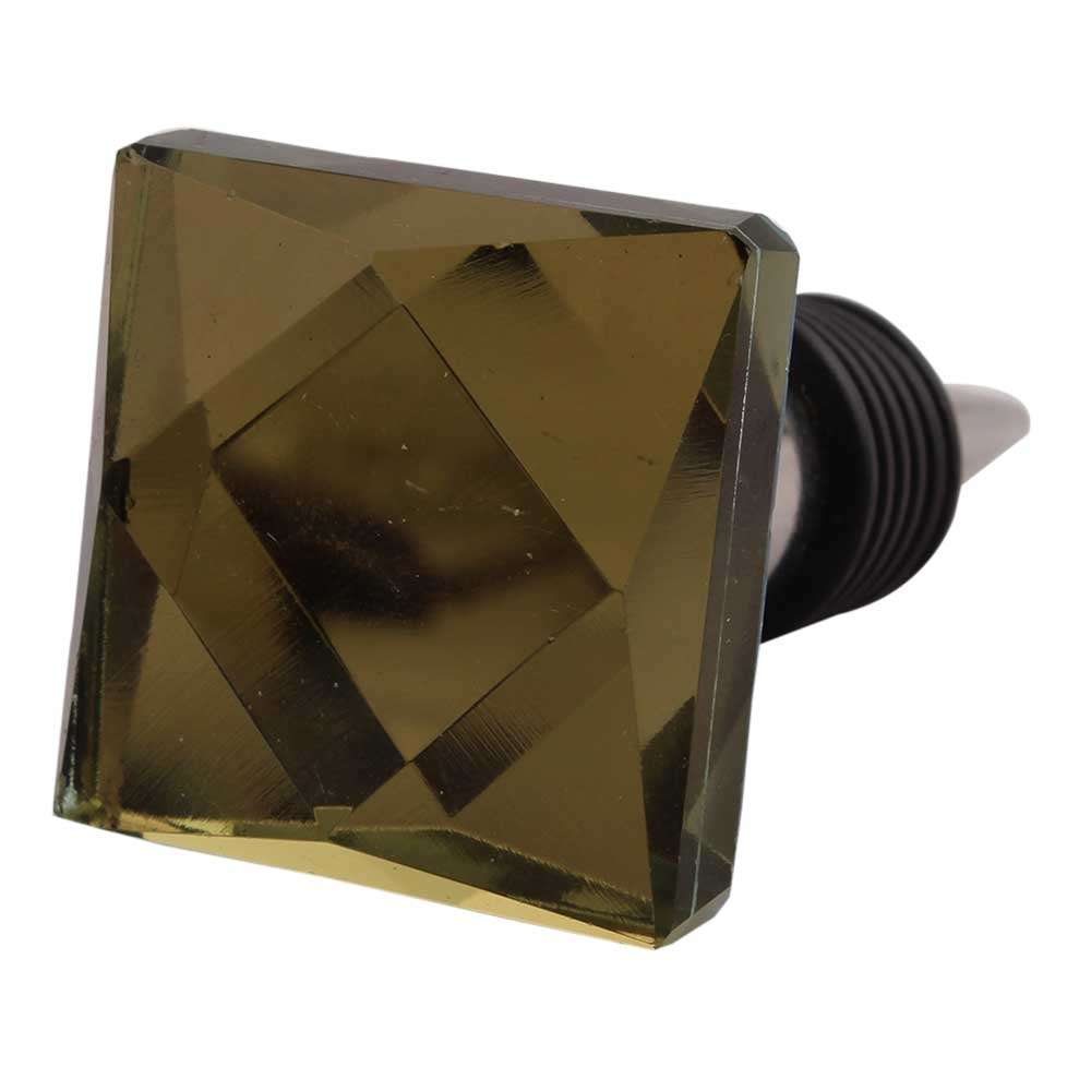 Golden Square Fine Cut Flat Glass Wine Stopper.zinc alloy wine bottle stopper with attractive Jute Bag Packaging.