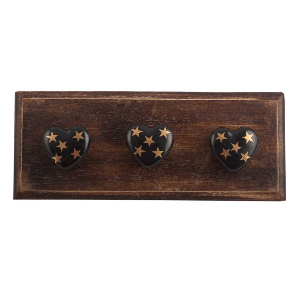 Golden Star Heart Ceramic Wooden Hook. A Perfect Complement to the Soft Tone of the Wood are these White Traditional Hat & Coat Hook Made of Genuine Porcelain and Brass. It can be use to Hang Jewellery, Leashes, Towels, Scarves, Light Weight Sweaters, Caps Etc.