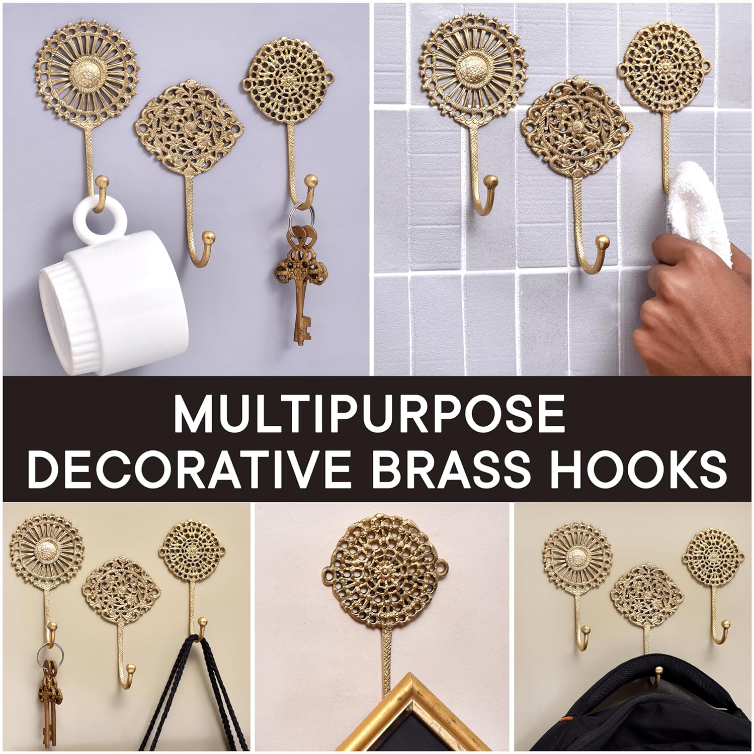 Golden Sunflower Wall Brass Decorative Hook. When Put on Wall or Cabinet It is An Art in Itself. This Hook is Strong Enough to Hold Your Cloths, Keys, Tea Cups, Coffee Mugs, Hand Towels Etc.