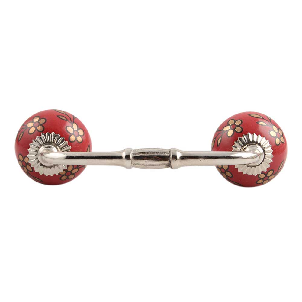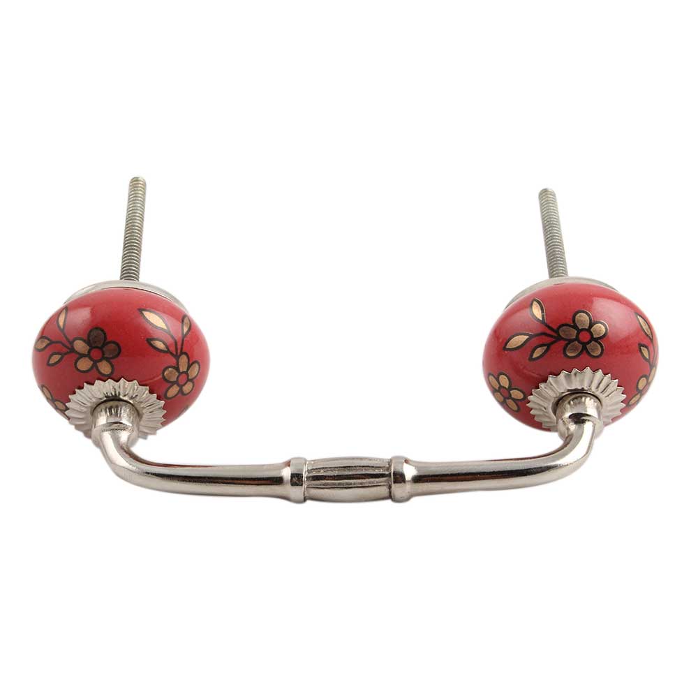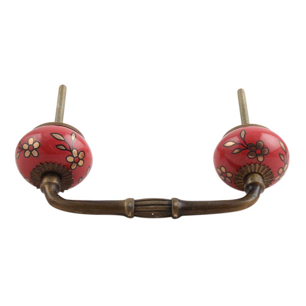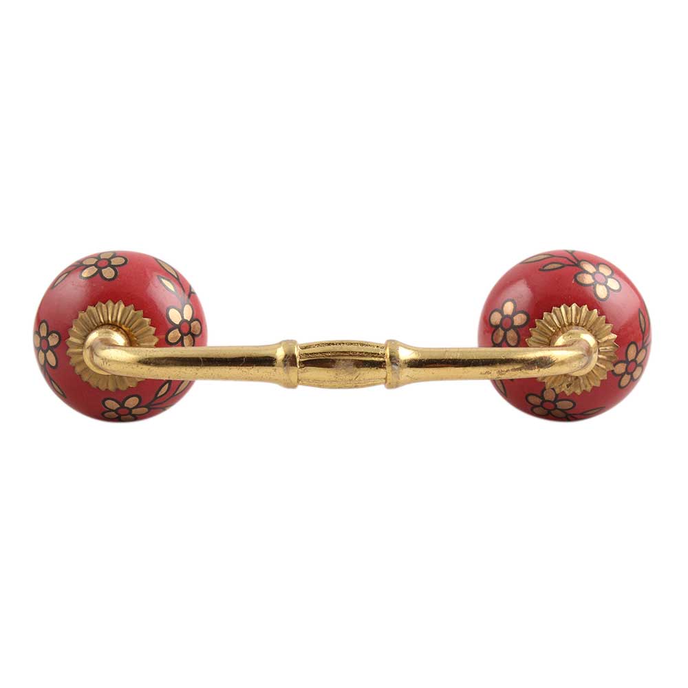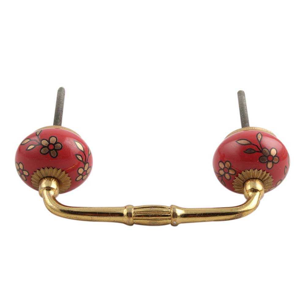Golden Tiny Flower Ceramic Bridge Handle. Ideal for Drawer, Dresser, Cabinet, Wardrobe, Cupboard and Almirah.